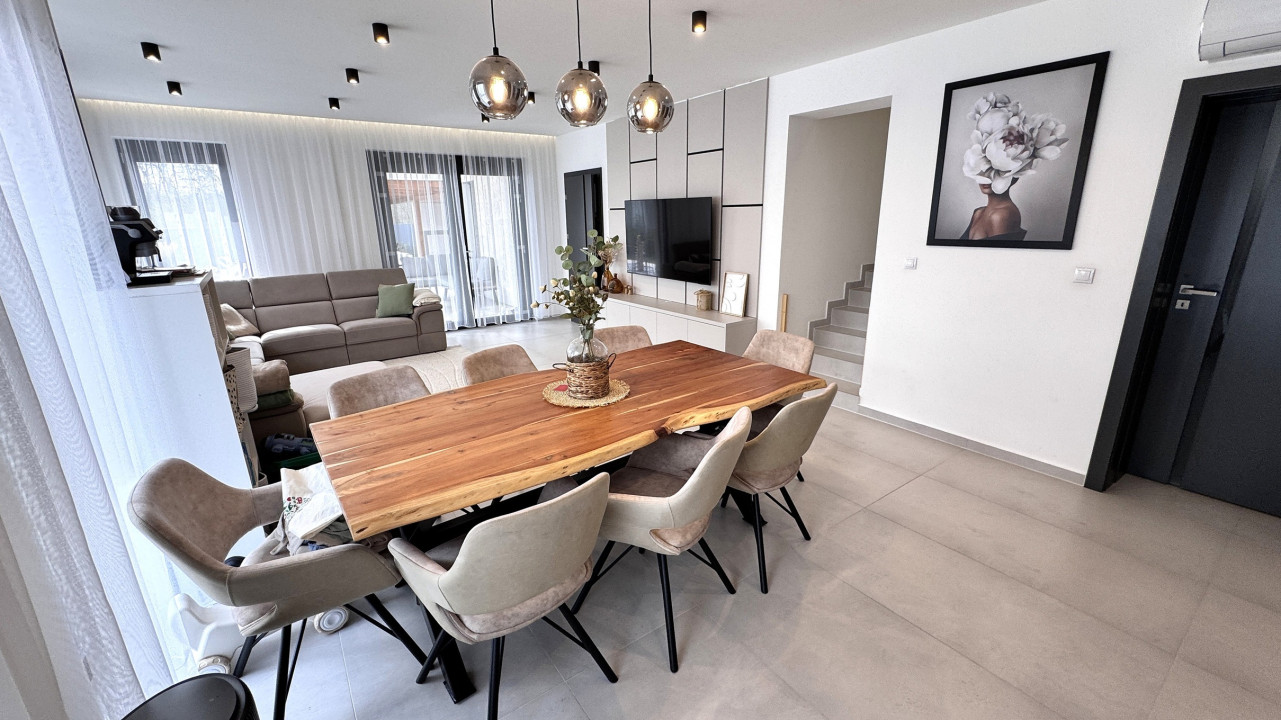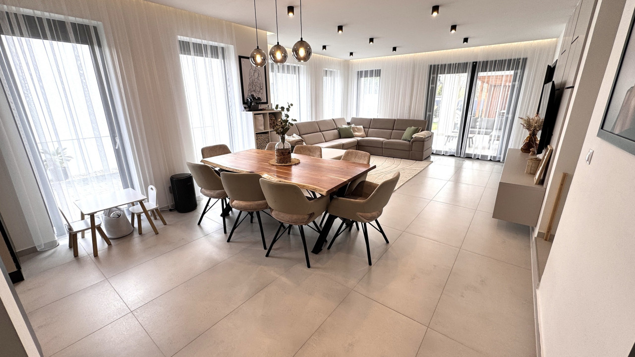 Ez az ingatlan tökéletes választás azok számára, akik modern, energiatakarékos otthont keresnek, és nem szeretnének lemondani a saját medence kényelméről sem.