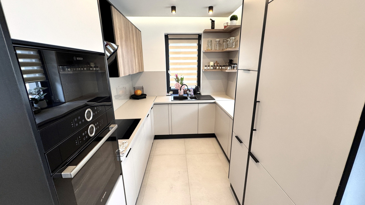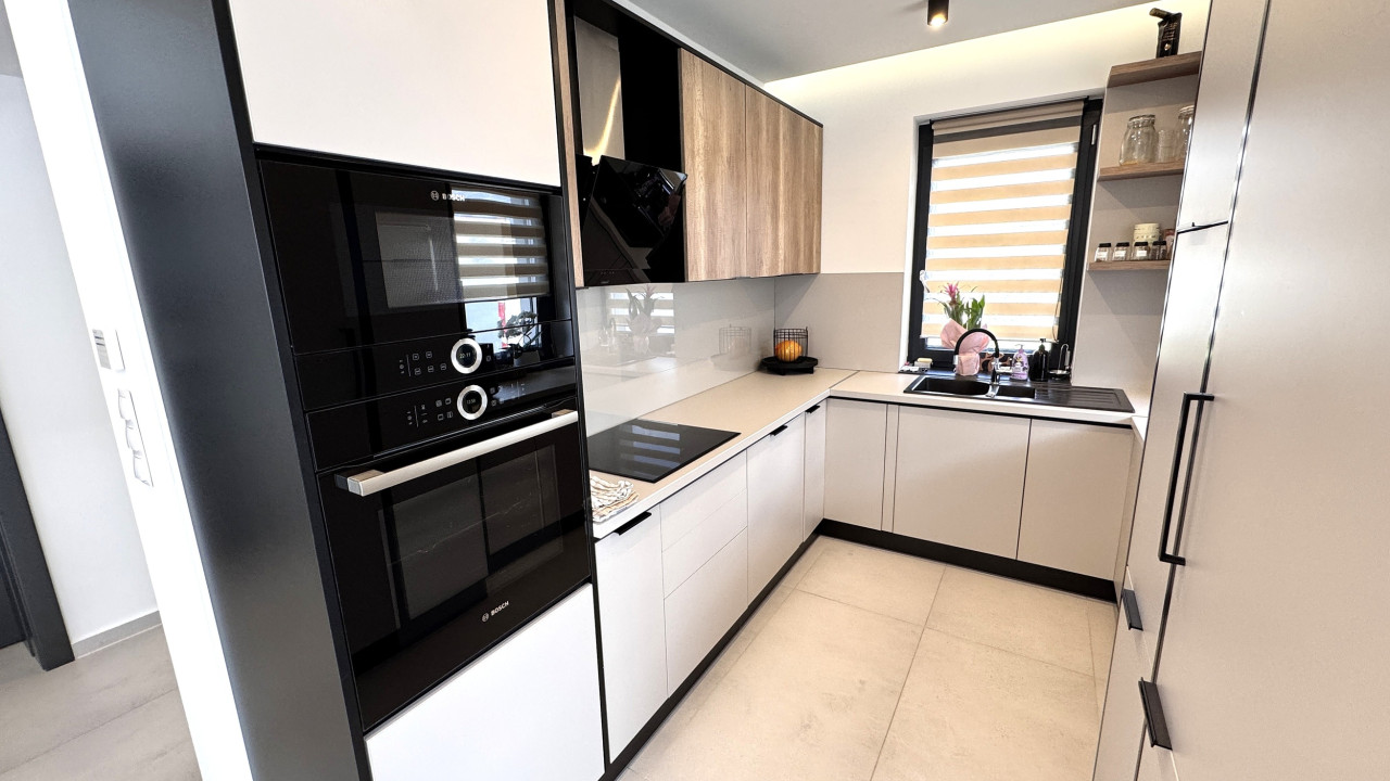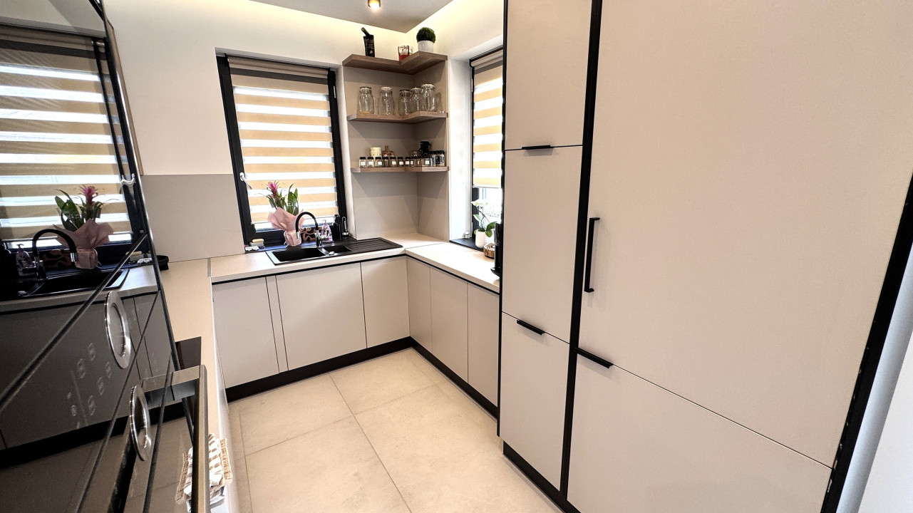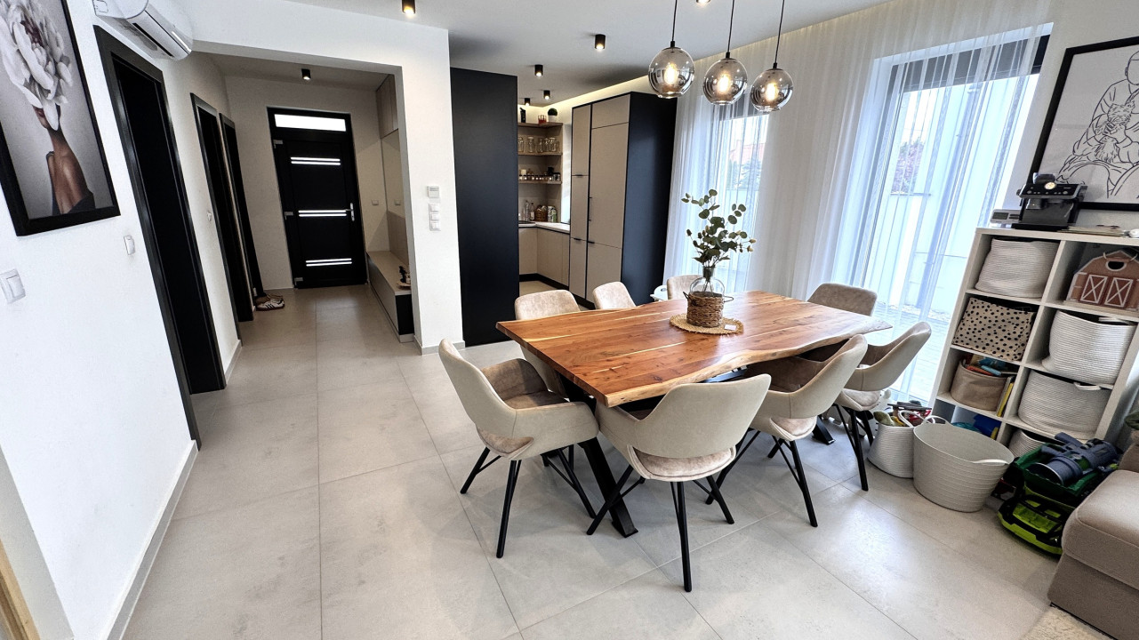 A beépített, gépesített konyha, a modern LED világítás és a két fürdőszoba (földszinten kádas, emeleten zuhanyzós) a legmagasabb minőséget képviselik.