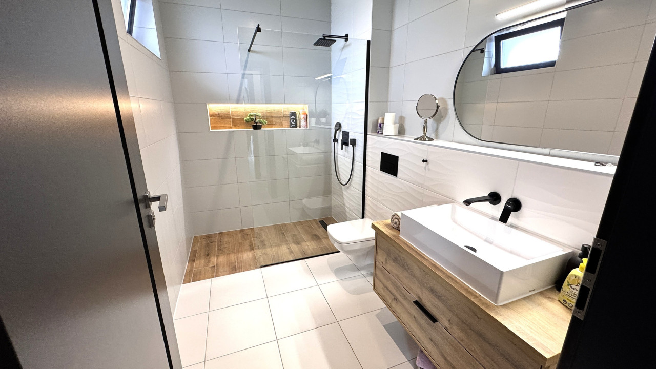 Zuhanyzós fürdőszoba WC-vel – kényelem a felső szinten.