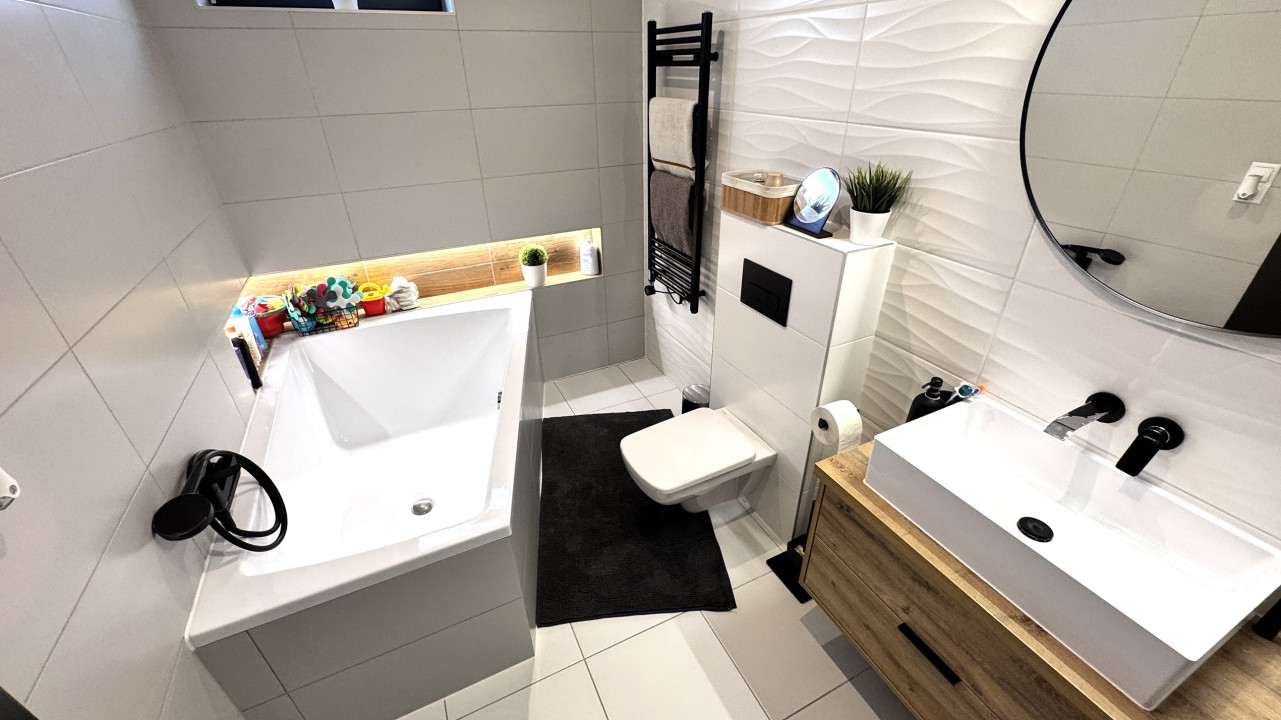 Kádas fürdőszoba WC-vel – pihentető fürdőzéshez.
