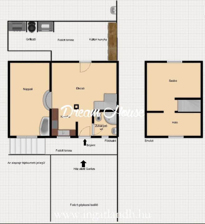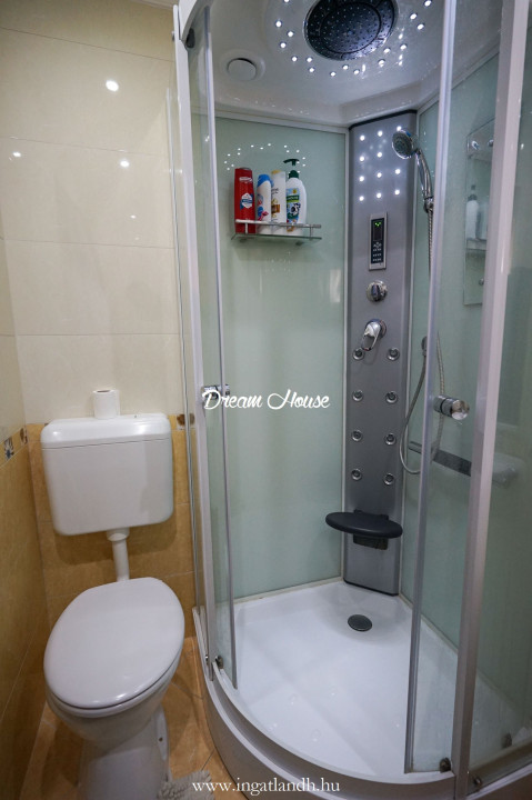 A földszinten található továbbá a zuhanyzó–wc, praktikus elrendezésben.