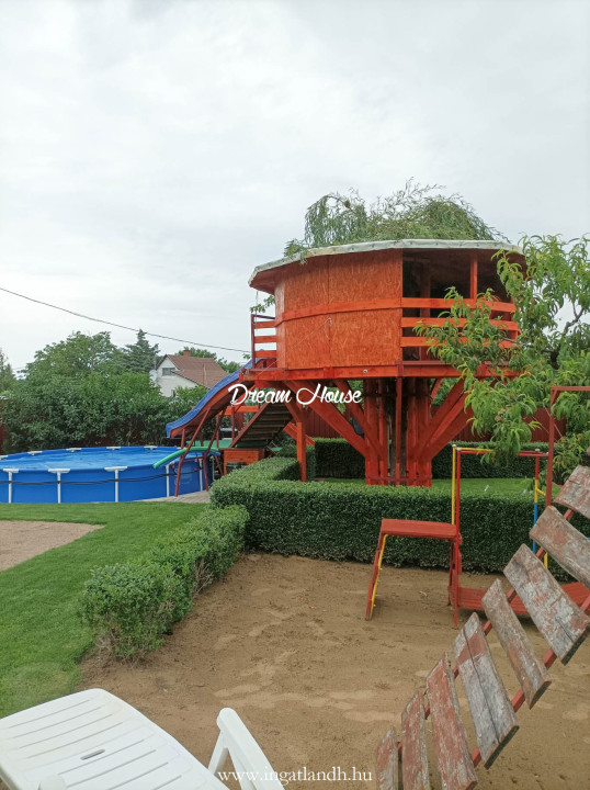 - gyerekeknek kilátó/játszóház, ahonnan egy csúszda vezet a medencéhez