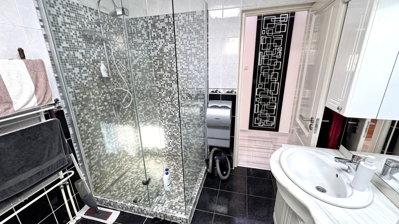 Közlekedő: 3 külön nyíló hálószoba, tágas amerikai konyhás nappali, 35 nm-es teraszkapcsolattal, kamra, kádas-zuhanyzós-dupla mosdós fürdőszoba, külön wc.