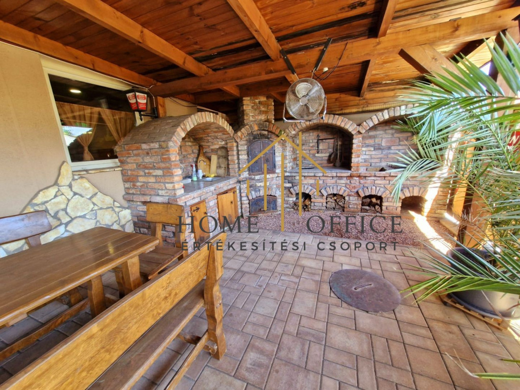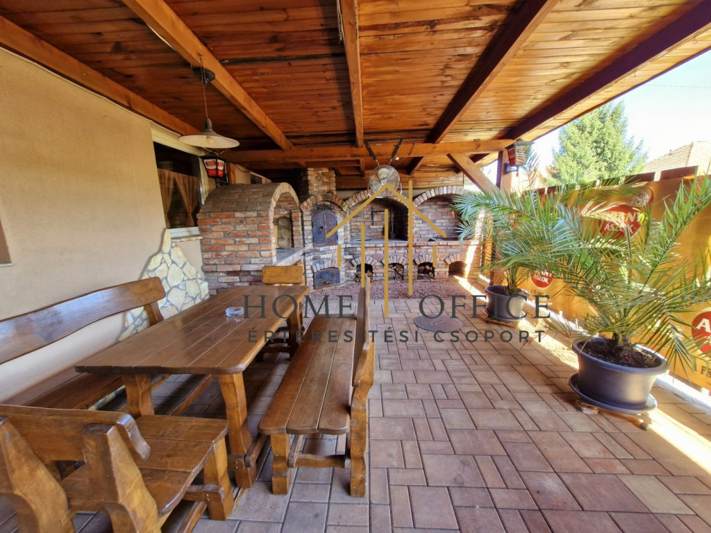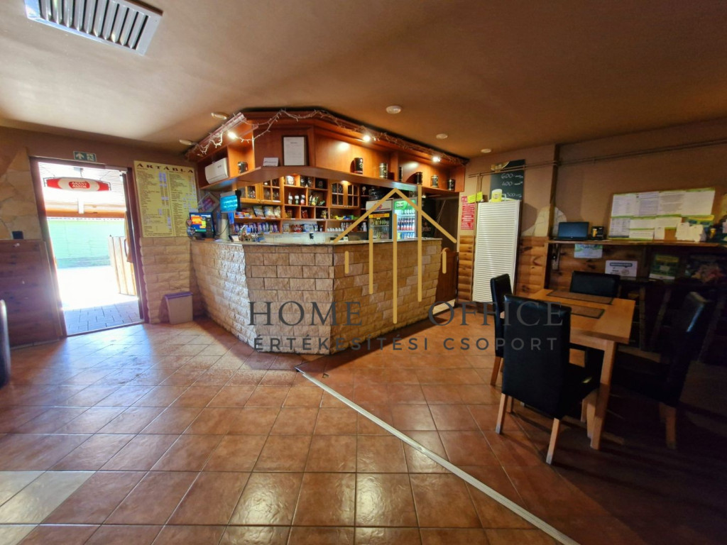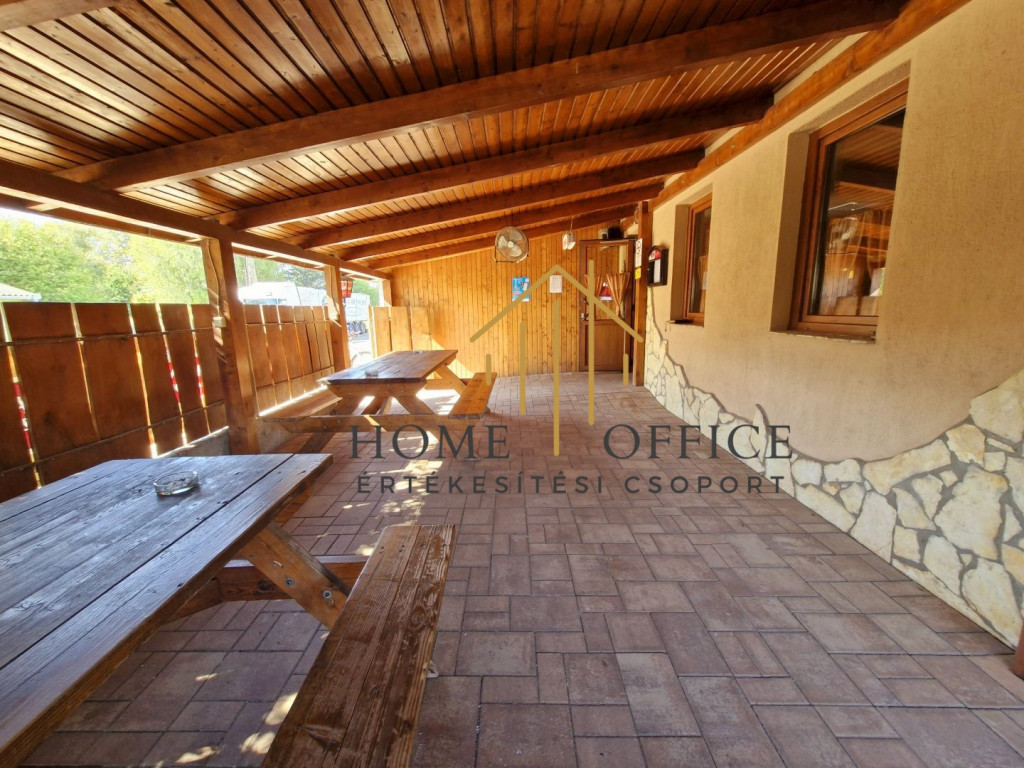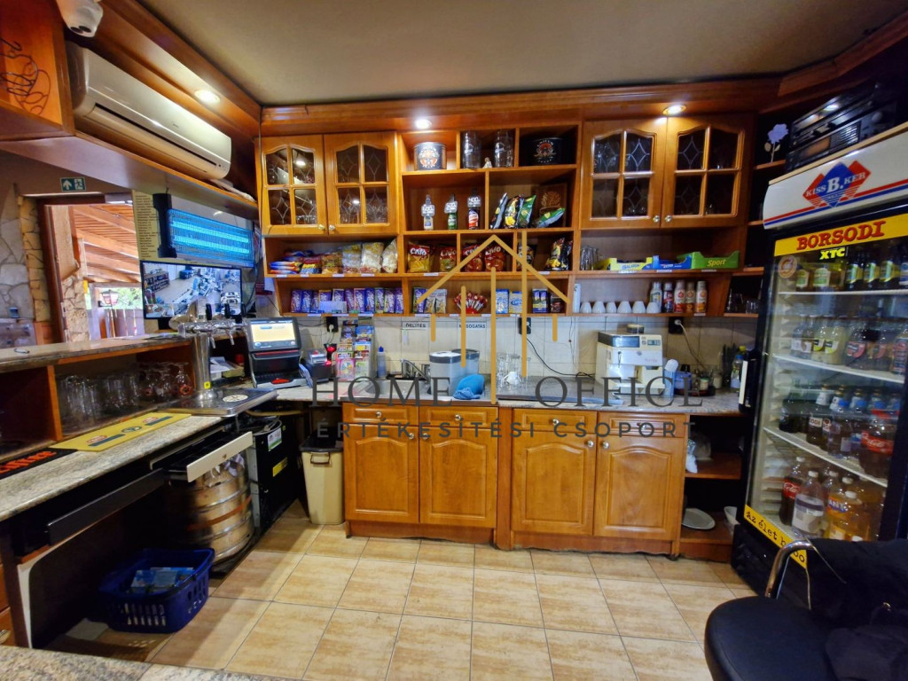 Az üzleti egység egyrészt vendéglátóhelyként működik, egy hozzá tartozó kb 100 nm-es fedett, térkövezett terasszal, ahol kemencés sütögető helyet különítettek el, külön vizesblokkal.