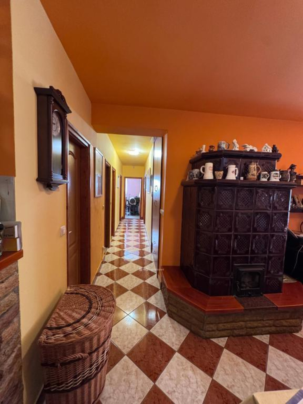 A házban 3 hálószoba, nappali, két fürdőszoba és konditerem szolgálja a benne lakók kényelmét. A konyhában gondosan megtervezett helytakarékos, igényes egyedi konyhabútor, minden extrával ellátva. A nappaliban és a szobákban egyedi méretre készült bútorok vannak, rengeteg tárolási lehetőséggel. A fűtést gázkazán biztosítja, illetve egy szép cserépkályha, ami igazán hangulatossá teszi a hideg téli estéket és önállóan is befűti az egész házat. Az emeleti tetőtér jelenleg részlegesen van beépítve, előtér és konditerem van fent. A tetőtér többi része, kb. 70 m2-es terület még igény szerint kialakítható.