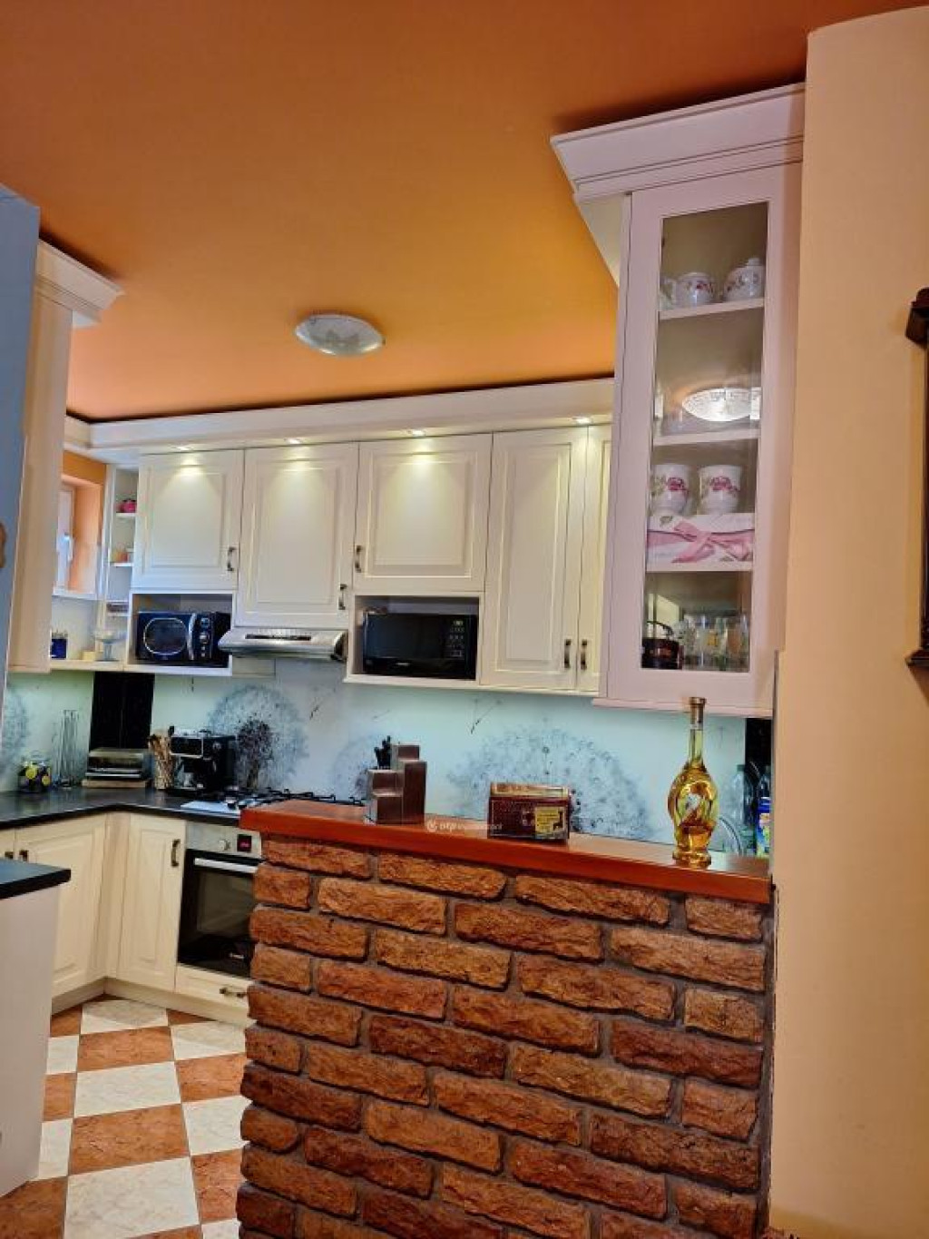 A ház 2005-ben épült, jól átgondolt egyedi igények alapján, kiváló minőségű anyagokból. A tulajdonosok nagy figyelmet fordítottak az energiatakarékosságra így napelem rendszert építettek ki. Bár a házat 44-es porotherm téglából építették, kapott még 5 cm szigetelést, a tökéletes hőmegtartás érdekében. Van fúrt kút, szivattyúval. A házban 3 hálószoba, nappali, két fürdőszoba és konditerem szolgálja a benne lakók kényelmét. A konyhában gondosan megtervezett helytakarékos, igényes egyedi konyhabútor, minden extrával ellátva. A nappaliban és a szobákban egyedi méretre készült bútorok vannak, rengeteg tárolási lehetőséggel. A fűtést gázkazán biztosítja, illetve egy szép cserépkályha, ami igazán hangulatossá teszi a hideg téli estéket és önállóan is befűti az egész házat. Az emeleti tetőtér jelenleg részlegesen van beépítve, előtér és konditerem van fent. A tetőtér többi része, kb. 70 m2-es terület még igény szerint kialakítható. A házban van garázs, amiből rögtön az előszobába vezető ajtón tudunk a hideg és az eső elől elzártan, kényelmesen kipakolni az autóból. A nagy 35 m2-es hangulatos pergolás terasz biztosítja, hogy egy hosszú nap után megpihenhessünk és gyönyörködhessünk az udvarban virágzó bokrok, gyümölcsfák között, vagy ha kedvünk van kicsit kertészkedhetünk is a konyhakertben. Az udvaron továbbá van még egy kedves kis 30 m2-es melléképület, ami kis átalakítás után akár vendégházként is funkcionálhat.