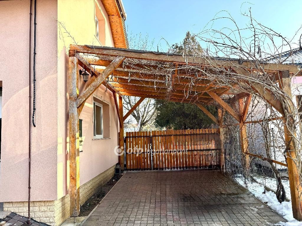 A ház 2005-ben épült, jól átgondolt egyedi igények alapján, kiváló minőségű anyagokból. A tulajdonosok nagy figyelmet fordítottak az energiatakarékosságra így napelem rendszert építettek ki. Bár a házat 44-es porotherm téglából építették, kapott még 5 cm szigetelést, a tökéletes hőmegtartás érdekében. Van fúrt kút, szivattyúval. A házban 3 hálószoba, nappali, két fürdőszoba és konditerem szolgálja a benne lakók kényelmét. A konyhában gondosan megtervezett helytakarékos, igényes egyedi konyhabútor, minden extrával ellátva. A nappaliban és a szobákban egyedi méretre készült bútorok vannak, rengeteg tárolási lehetőséggel. A fűtést gázkazán biztosítja, illetve egy szép cserépkályha, ami igazán hangulatossá teszi a hideg téli estéket és önállóan is befűti az egész házat. Az emeleti tetőtér jelenleg részlegesen van beépítve, előtér és konditerem van fent. A tetőtér többi része, kb. 70 m2-es terület még igény szerint kialakítható. A házban van garázs, amiből rögtön az előszobába vezető ajtón tudunk a hideg és az eső elől elzártan, kényelmesen kipakolni az autóból. A nagy 35 m2-es hangulatos pergolás terasz biztosítja, hogy egy hosszú nap után megpihenhessünk és gyönyörködhessünk az udvarban virágzó bokrok, gyümölcsfák között, vagy ha kedvünk van kicsit kertészkedhetünk is a konyhakertben. Az udvaron továbbá van még egy kedves kis 30 m2-es melléképület, ami kis átalakítás után akár vendégházként is funkcionálhat.