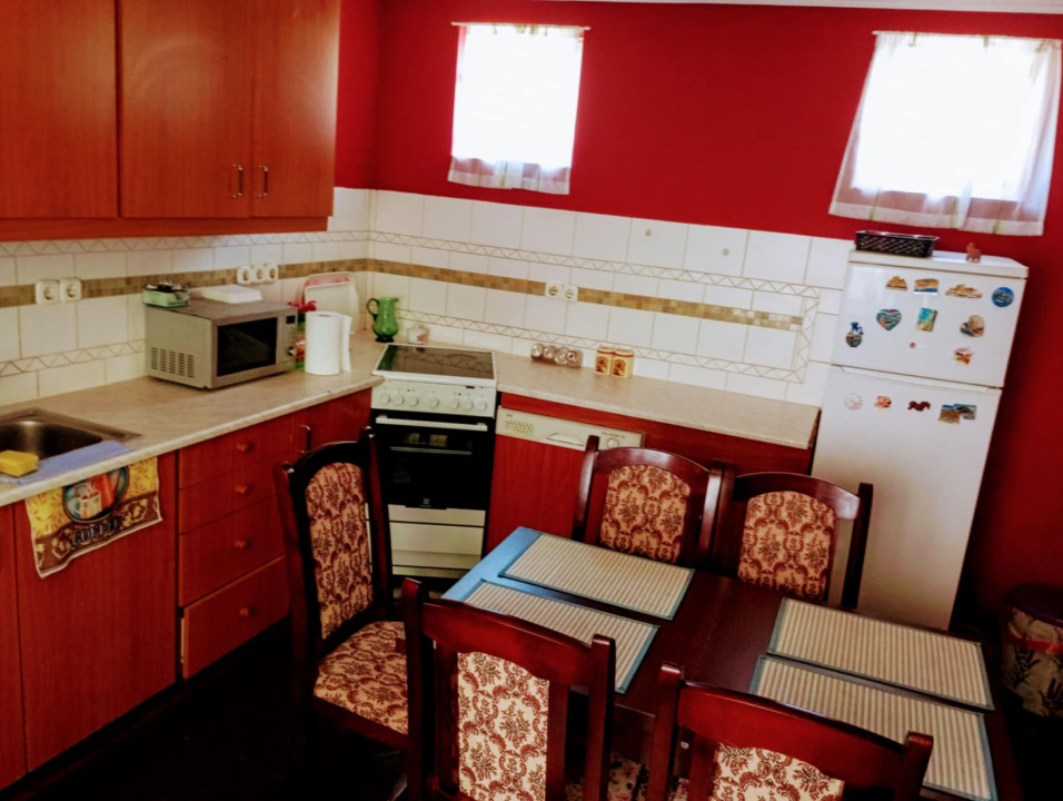 Eladó egy kertes családi ház Ócsa belterületén, iskolához, üzletekhez, vasútállomáshoz közel, 2 szoba, tágas nagy konyha / ebédló beépített bútorral, mosogató géppel. Gardrób szekrény az egyik szobában. Fűtése elektromos, gáz a telken belül. Ablakok műanyag, szúnyoghálós, redőnyös megoldással. A telek területe 637 m2 ami mindenféle konyhakerti növény termesztésére is alkalmas, termő gyümölcsfákkal. Kocsibeállási lehetőség. Laminált padló és kerámia burkolatok. Melegvíz Ariston boylerről. WC fürdő egyben, tusolóval.