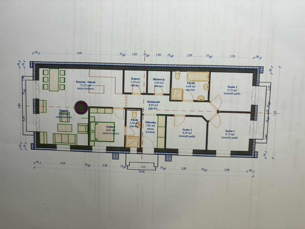 A 101m2-es belső hasznos alapterület alkalmassá teszi akár nagyobb család részére is a kényelmes együttélést.