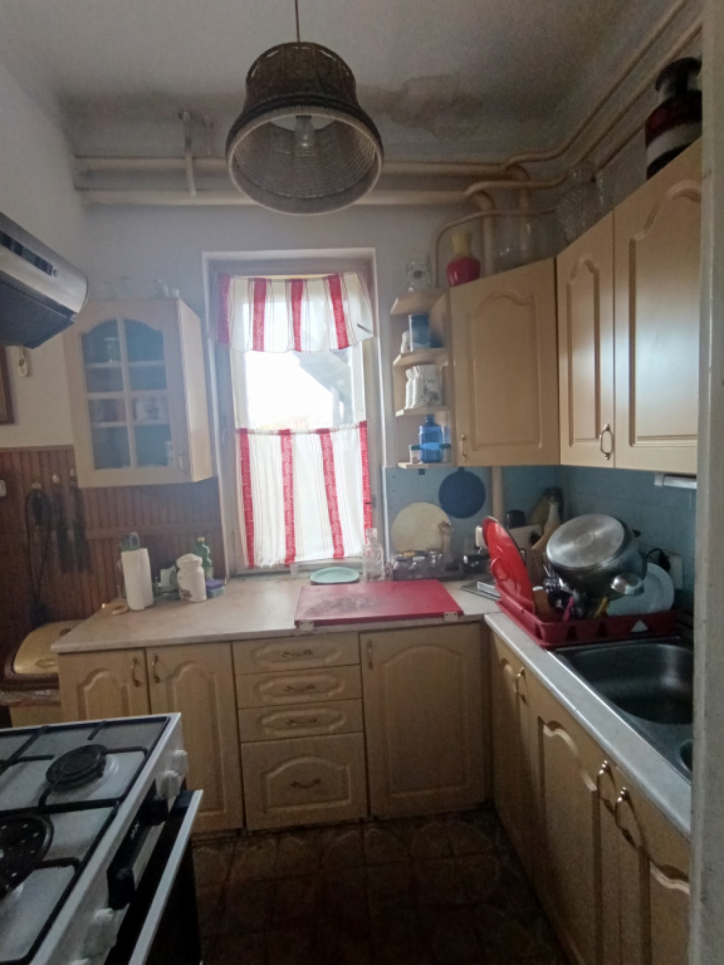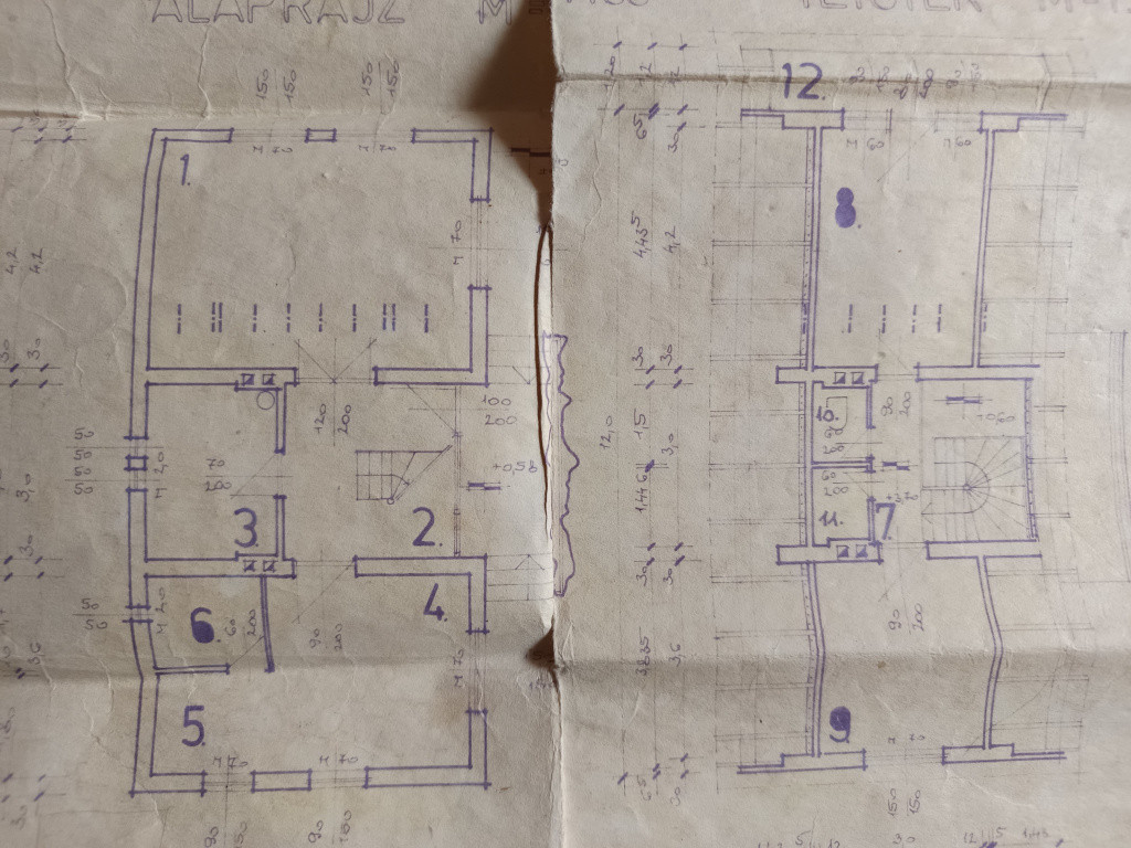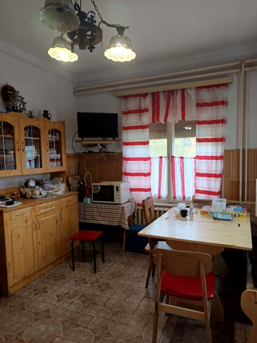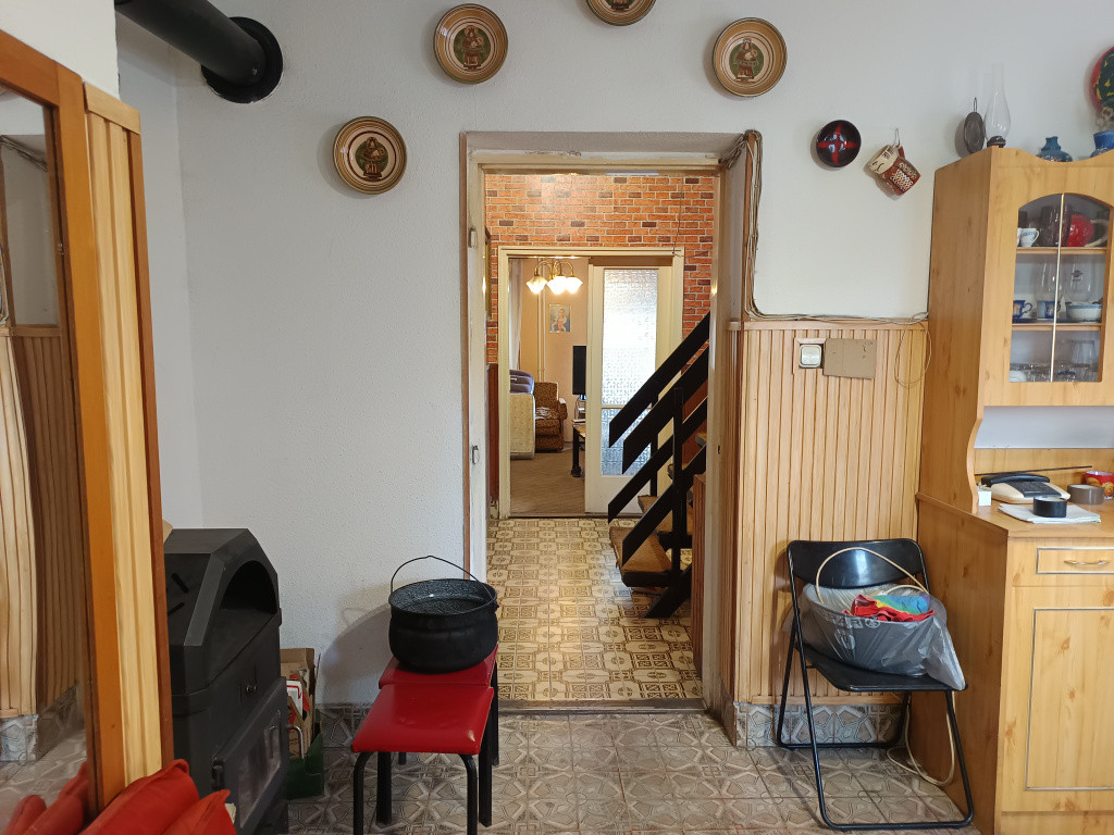 A tető hibátlan, de szigetelni érdemes. A telken és házban van villany (éjszakai-nappali áram), gáz, víz, csatorna. Radiátorai részben cserélve lettek, valamint részben az eredeti ablakok közül is lett már cserélve műanyagra. Kombi cirkó biztosítja a fűtést, illetve a tágas étkezőben van egy működőképes kazán/kandalló is. A vizet jelenleg villanybojler melegíti. Az étkező és konyha közötti részleges fal elbontható, így egy 20 m2-es konyha / étkezőt kapunk. A konyhához tartozik egy kamra, a fürdő – wc külön van. Az alsó szinten egy nagy nappali szoba van (több mint 20 m2), a fenti szinten 2 külön nyíló tágas szoba és egy jól használható galéria, tároló.