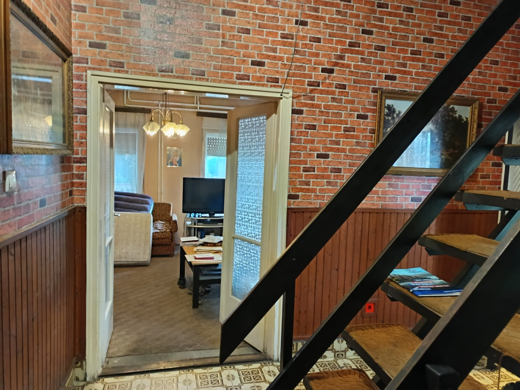 A ház 1980-ban épült téglából. Kétszintes, világos, rendkívül jó elosztású. Mindkét szinten van nagy terasz, a kertje csodás, gyermekes, kutyás családoknak rendkívül hangulatos otthona lehet. A ház tágas terei is, valamint a nagy telek lehetőséget biztosít akár több szoba kialakítására, vagy akár hozzáépítésre / bővítésre, és további különálló ház(ak) felépítésére.