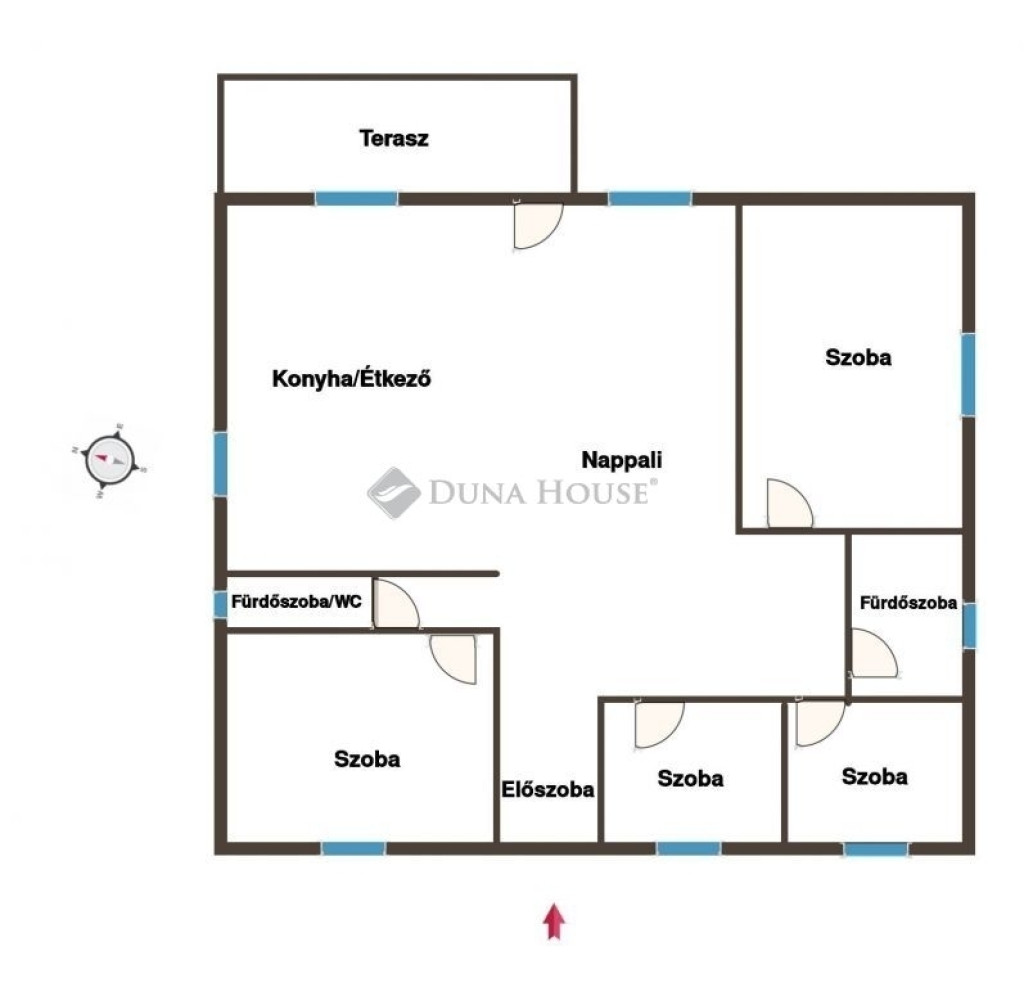 Az ingatlanban tágas konyha étkezővel, nagy nappali teraszkapcsolattal, két fürdőszoba, valamint két nagyobb és két félszoba kapott helyet.
