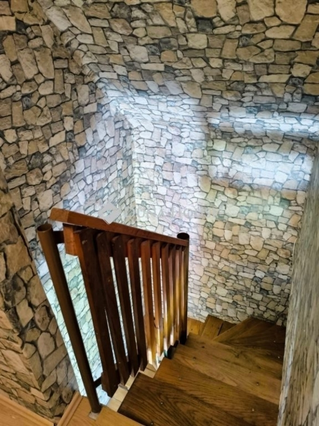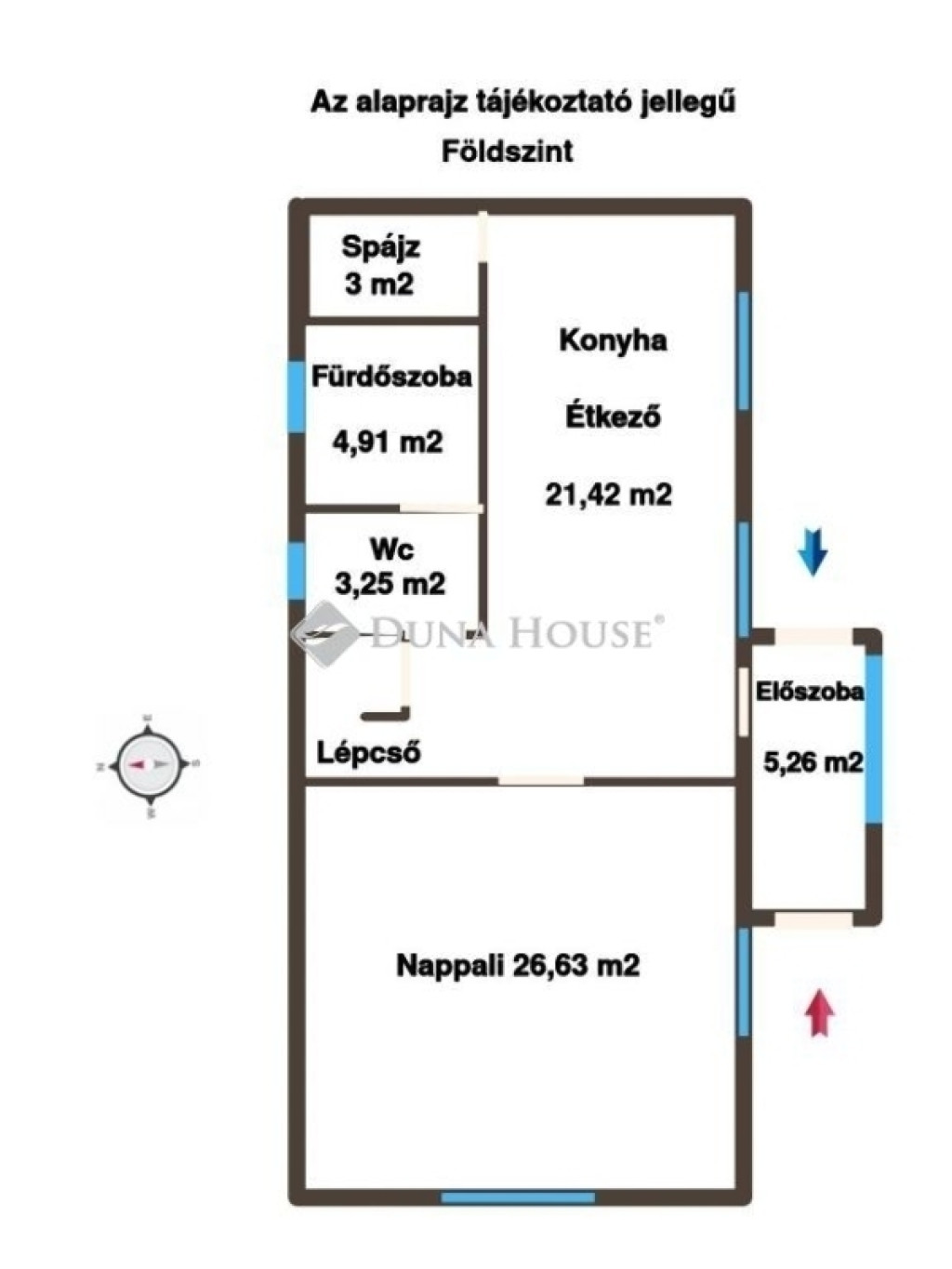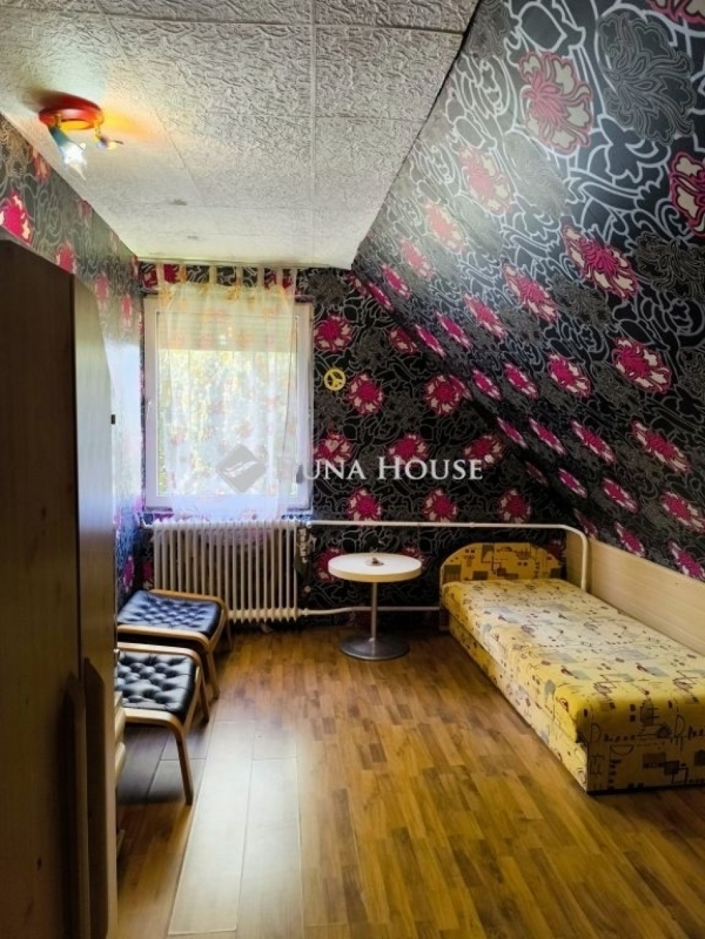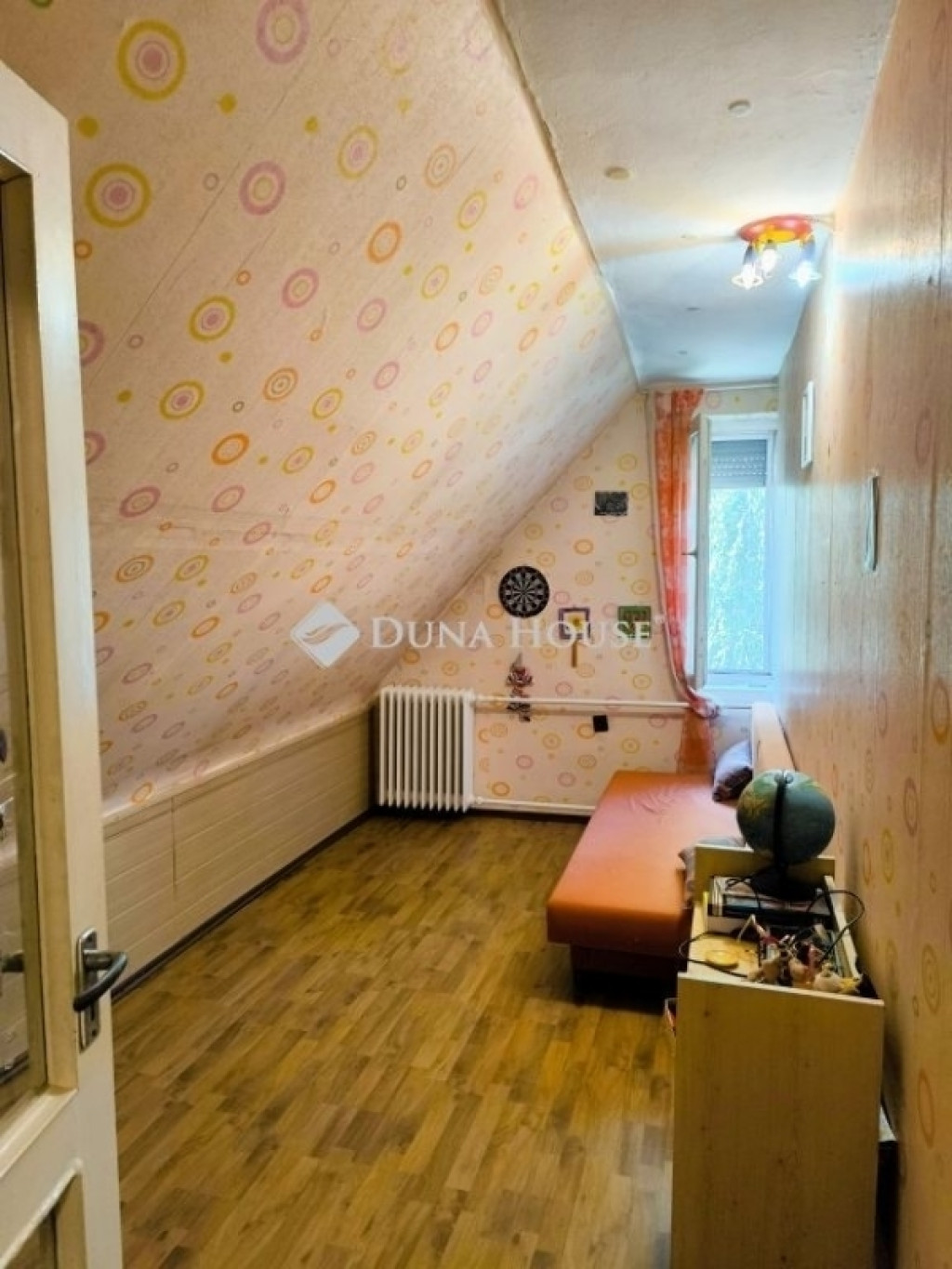 A 110 m2 alapterületű épület 909 négyzetméteres, gondozott telken helyezkedik el. A ház földszintjén tágas nappali, konyha-étkező, spájz, valamint fürdőszoba és WC található. A tetőtérben egy egész és két félszoba kapott helyet, előszobával és egy tárolóval kiegészülve.