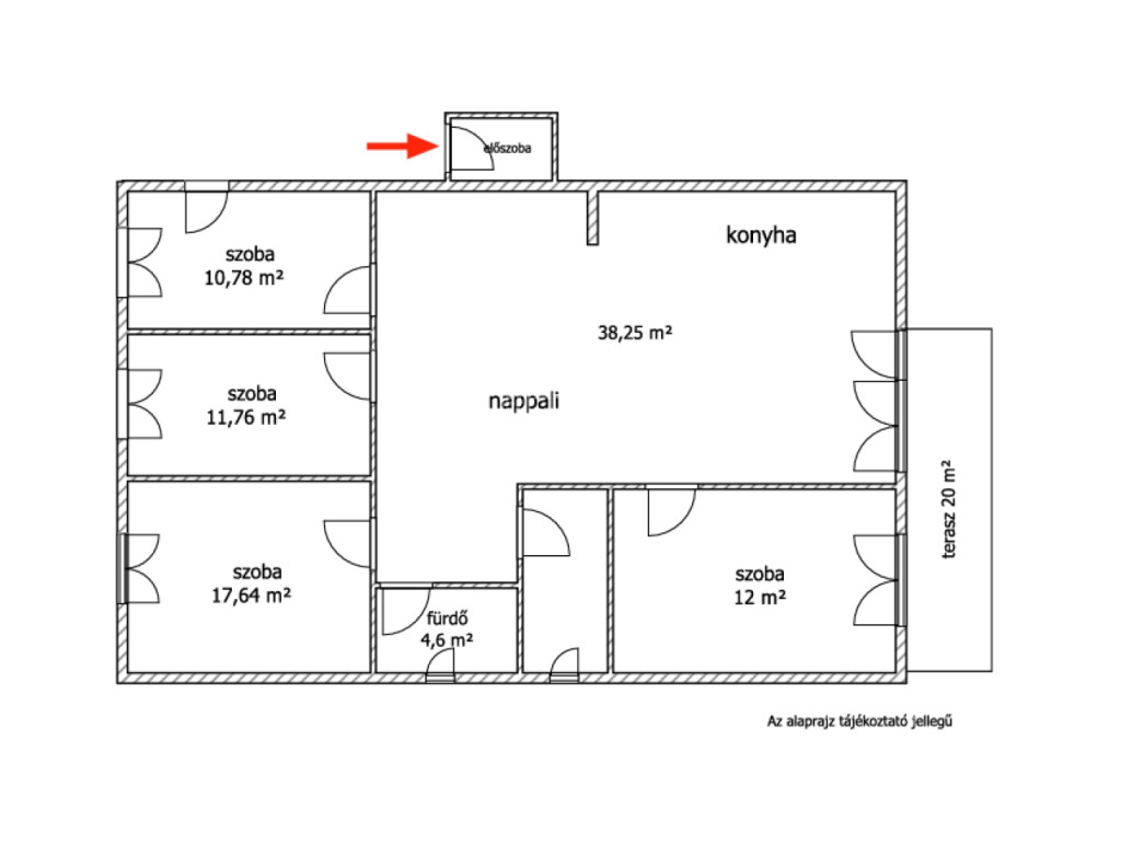 Főház: 4 hálószoba, amerikai konyhás nappali, 2 fürőszoba, előtér, 20 nm fedett terasz.