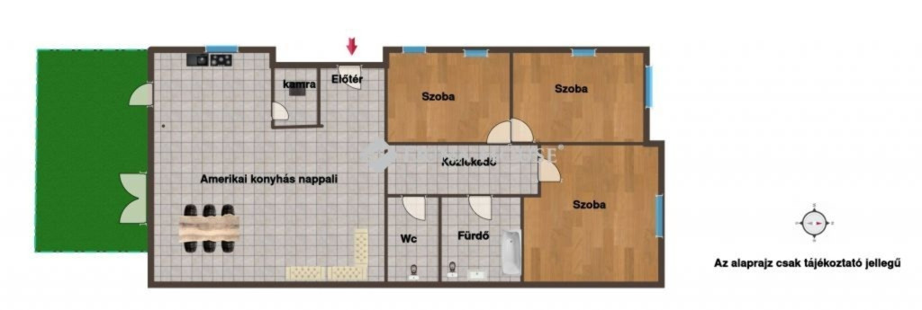 Amerikai konyhás nappali délnyugati fekvésének köszönhetően egész nap világos