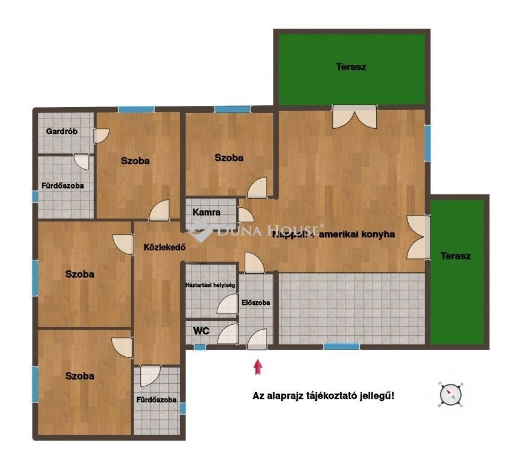 Helyiségek elosztása: