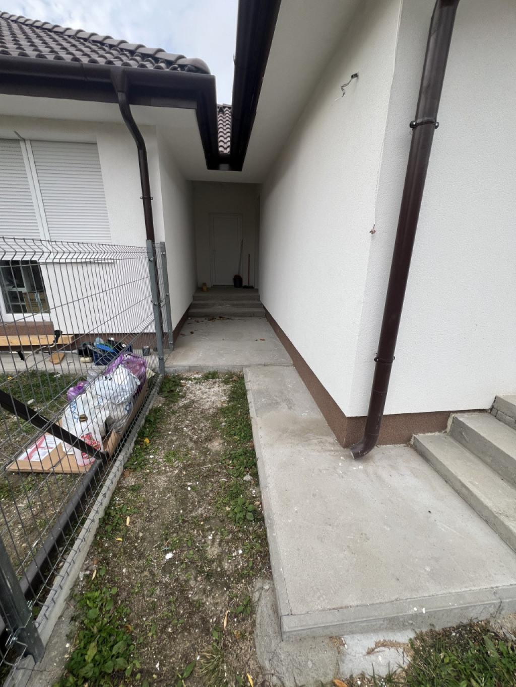 Eladó egy 87 nm-es, prémium kivitelű ikerház a városközpont közelében, aszfaltozott utcában, saját 25 nm-es terasszal és egy további 3 nm-es pihenőterasszal.