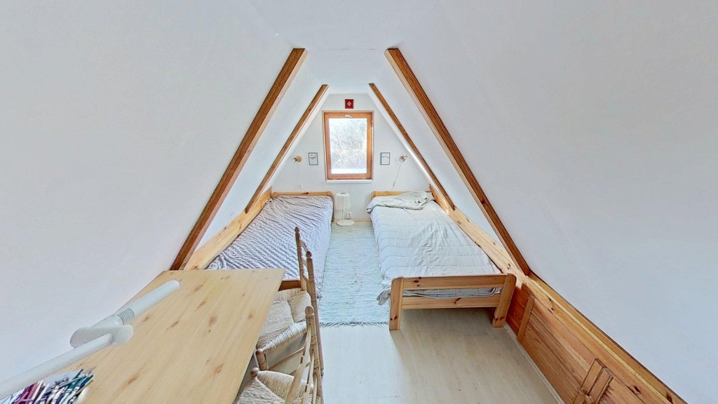 Az emeleten két (egy nagyobb és egy kisebb) háló áll rendelkezésre.