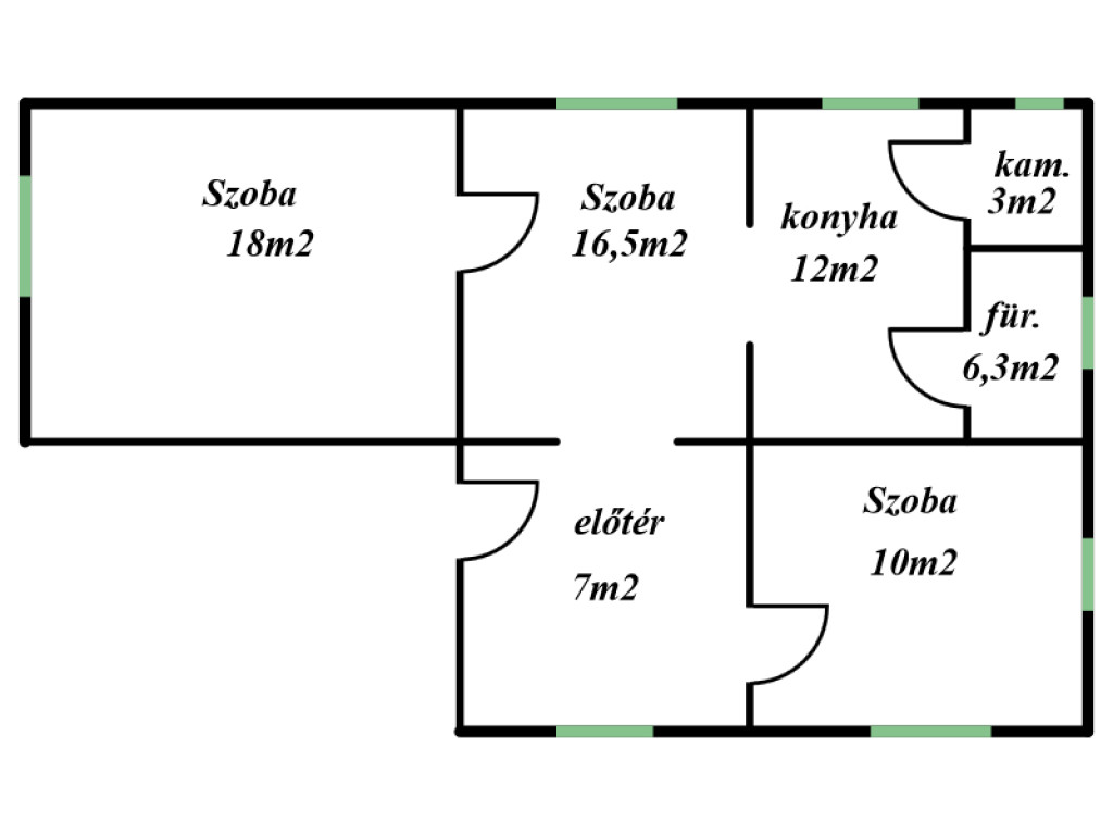 Az ingatlan helyiségei: