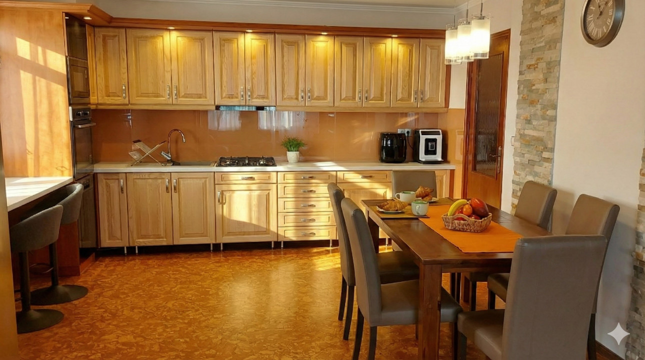- Tágas, napfényes amerikai konyhás nappali (összesen 43 m²): prémium gépesített konyha, kamra, és egy nappali, ahol az egész család elfér.