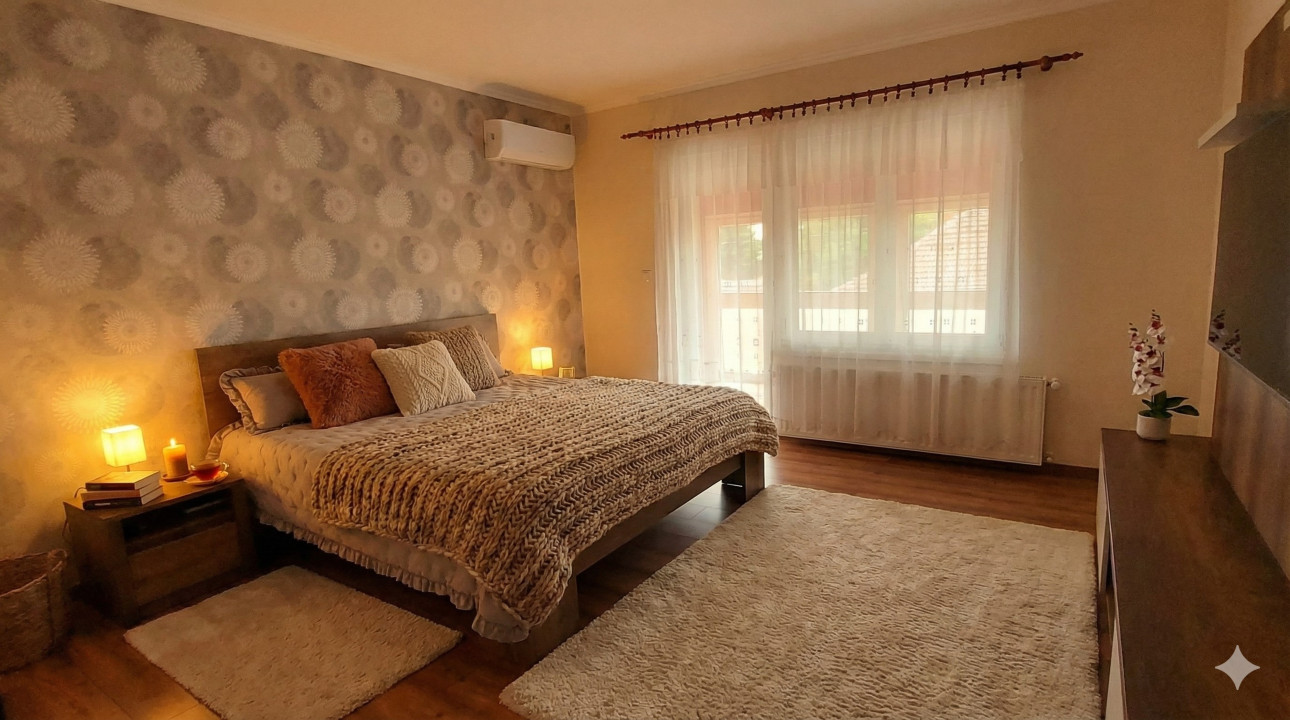Ez a ház a "rezsibajnok" kategória csúcsa: a masszív napelempark és a modern szigetelés garantálja, hogy az energiaárak változása Önnek ne okozzon fejfájást. Ide tényleg csak a bőröndöket kell hozni.