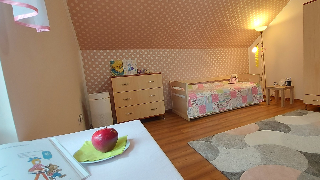 - Földszinti szoba (17,6 m²): Ideális gyerekszobának vagy dolgozónak, közvetlen kapcsolattal egy 7,6 m²-es beüvegezett loggiához.