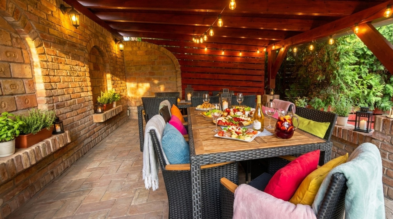 - Nyári terasz: A kert hátsó sarkában, a baráti borozások és sütögetések központja.