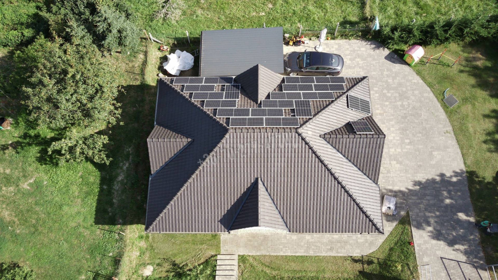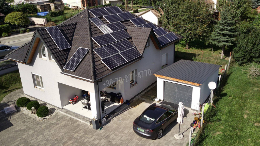 A tetőszerkezetre antracit színű Tondach cserép került. Az energiahálózat 3 x 25 A, éjszakai mérővel is szerelve. A fűtés elektromos kazánról megoldott, falfűtéssel kivitelezve. A felszerelt 8 kw-os Fronius inverterrel ellátott napelem rendszer szaldó elszámolású- az éves teljes áramellátást fedezi.