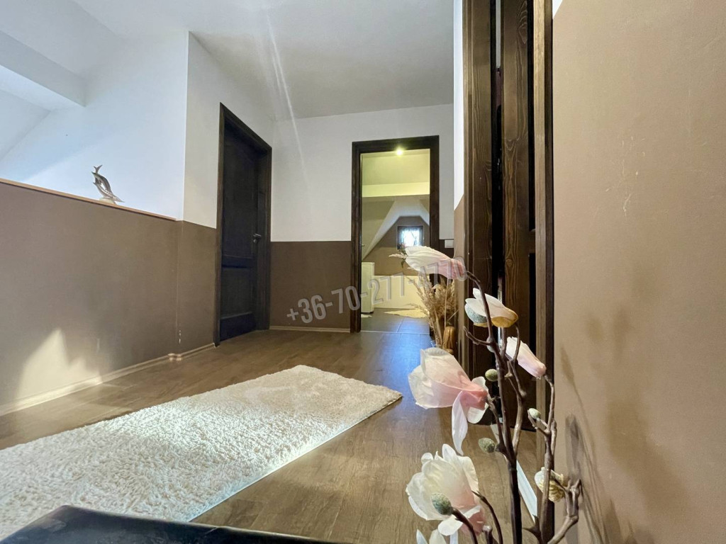 A teljes tetőtér beépítésével készült az ingatlan, így két szintes ez az egyedi kialakítással és magas minőségben 2015-ben épített családi ház.