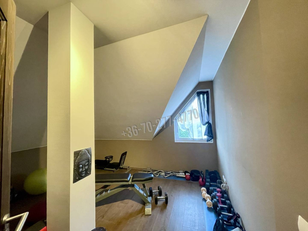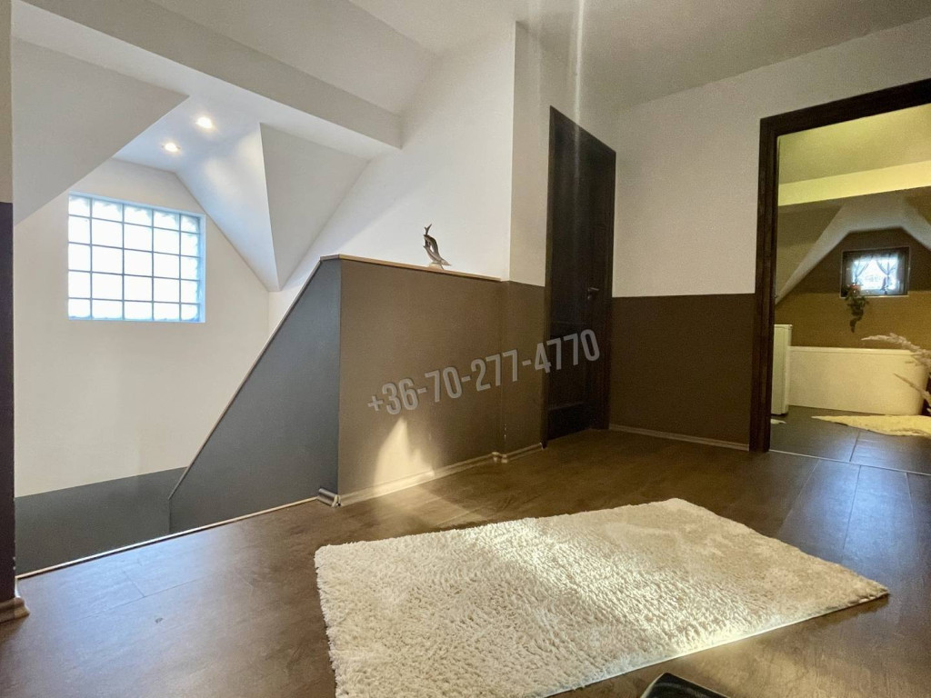 Az emeletre érve látszik igazán, az egyedi építési stílus... a tetőszerkezet különleges megoldásai, az üvegtégla beépítések, a belső oszlopok és a különleges ablakformák teszik különlegessé az ingatlant.