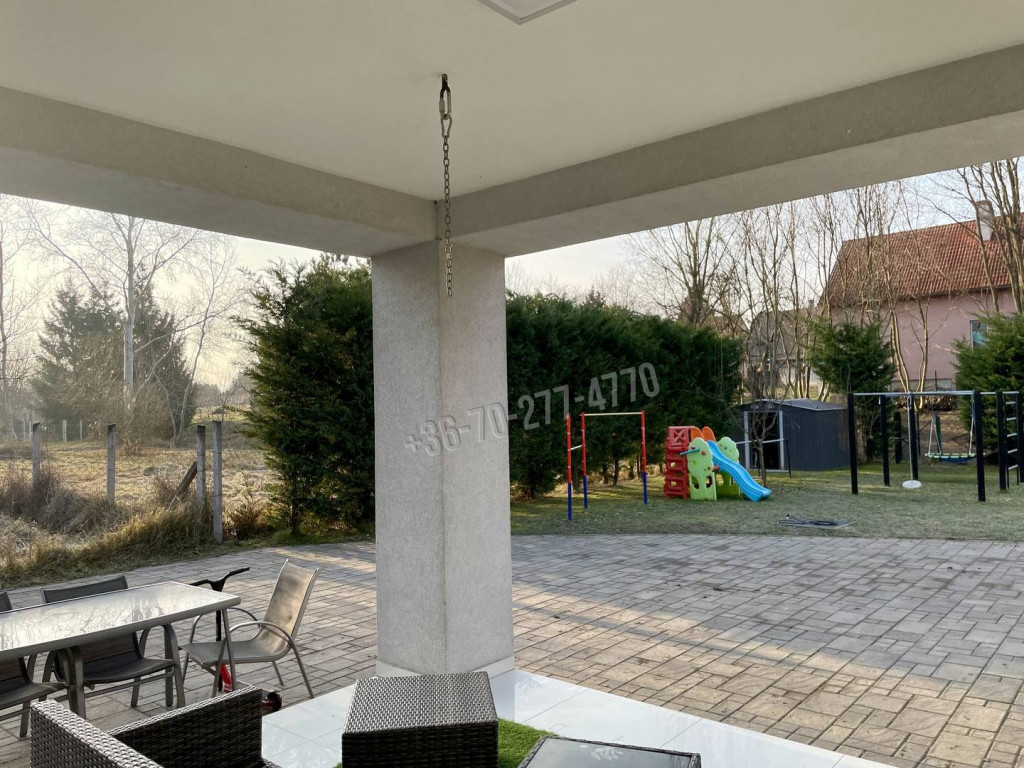 Az udvar rendezett, parkosított, játszótér is lett kialakítva -akár tiniknek is megfelelő-. Bár egy bő vizű ásott kút is van az udvarban, de külön locsoló vízóra is lett bekötve.