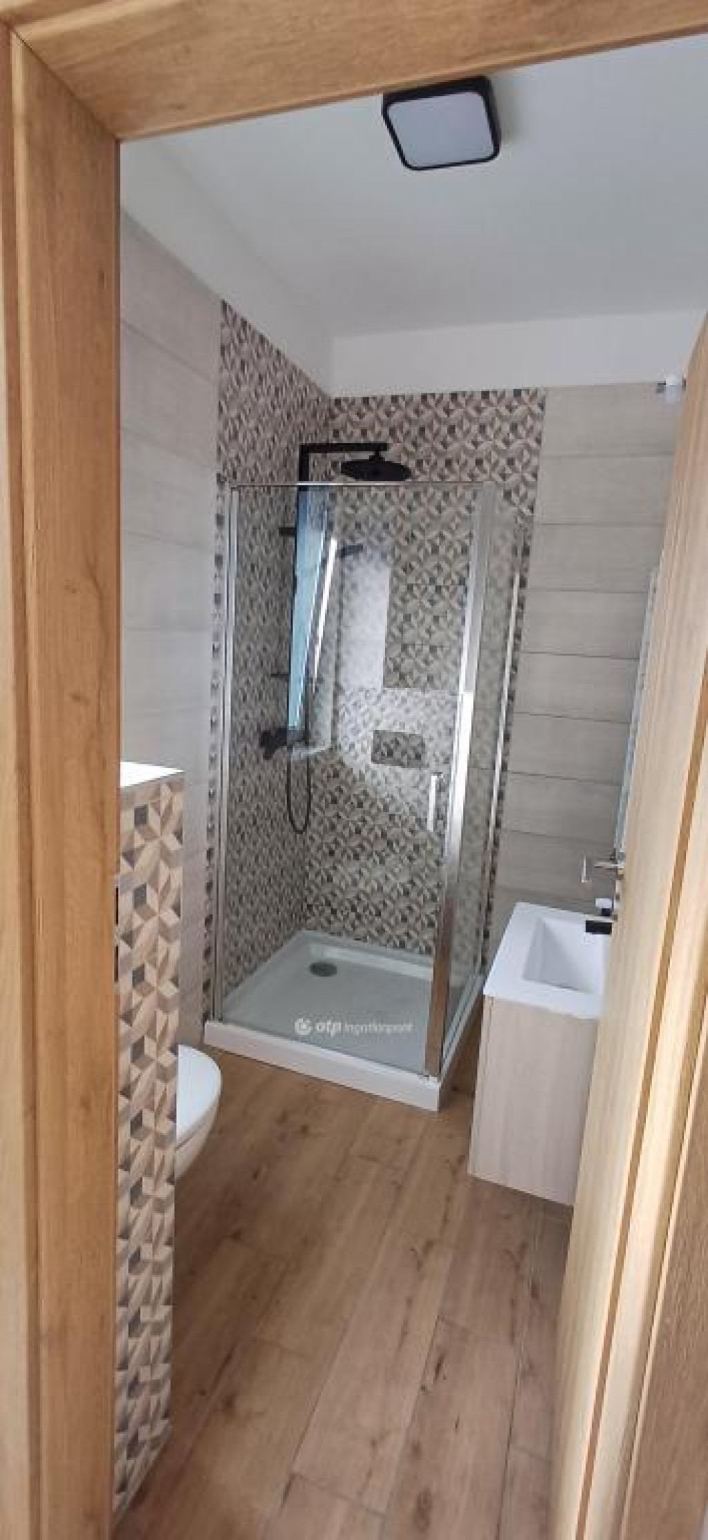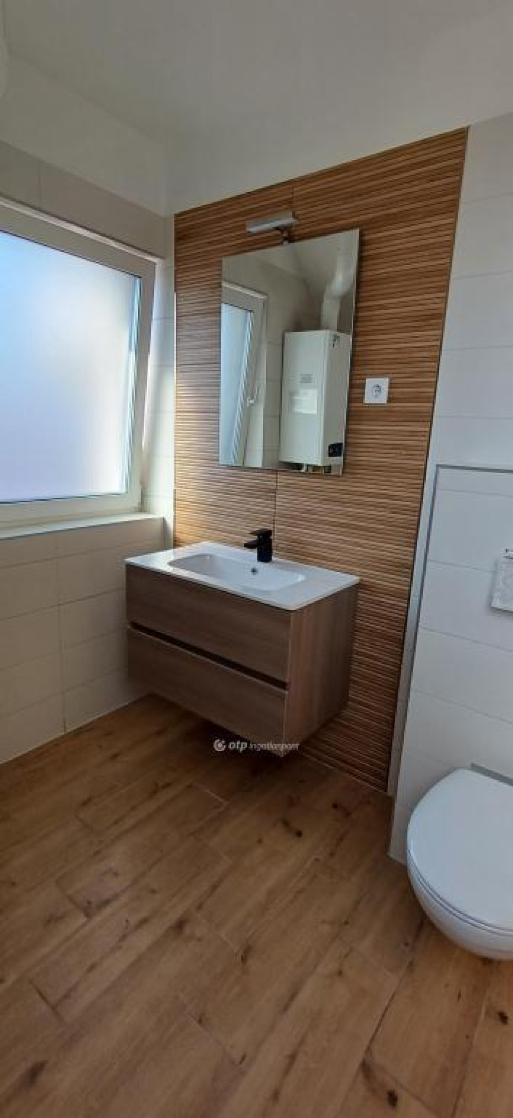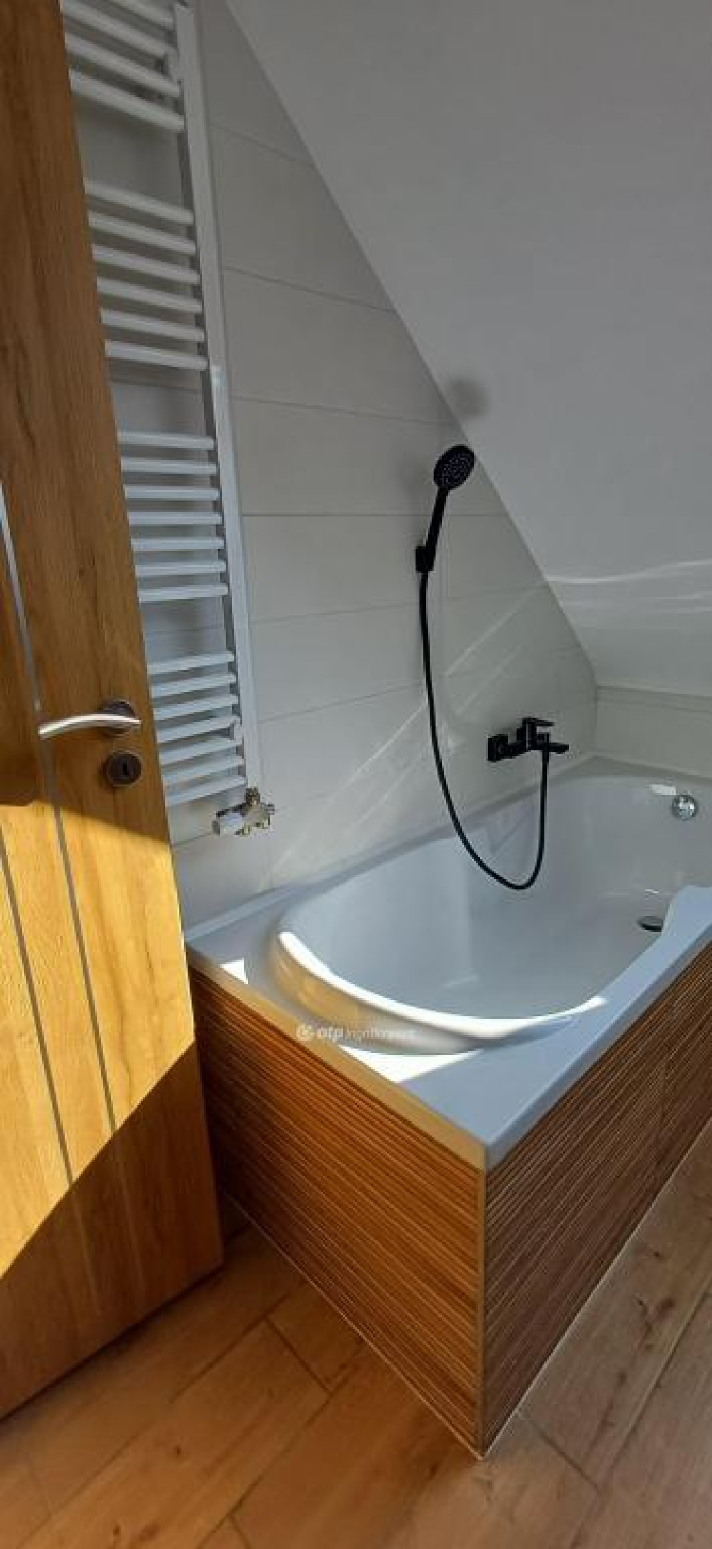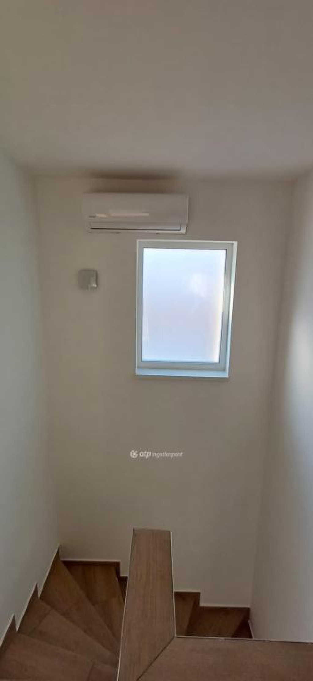 Heves megye, Ostoros, Tópart lakóparkban, új építésű, 92/100 m2 alapterületű (+ terasz és gépkocsibeálló), földszint + tetőteres kialakítású, ikerház eladó. Az elkerített telek 397 m2. Az épület 30 cm vastag POROTHERM, 30 X-THERM tégla falazatú, 10 cm szigeteléssel rendelkezik. A nyílászárók fehér színű pvc szerkezetűek, hőszigetelt üvegezéssel, szellőztető zsalus kialakítással, elektromos redőnyökkel van felszerelve. Az otthon melegét Ariston kondenzációs kazán biztosítja. A földszinten padlófűtés és radiátoros fűtés, az emeleten radiátoros fűtés lett kialakítva. Concept hűtő-fűtő klíma is be lett szerelve.
