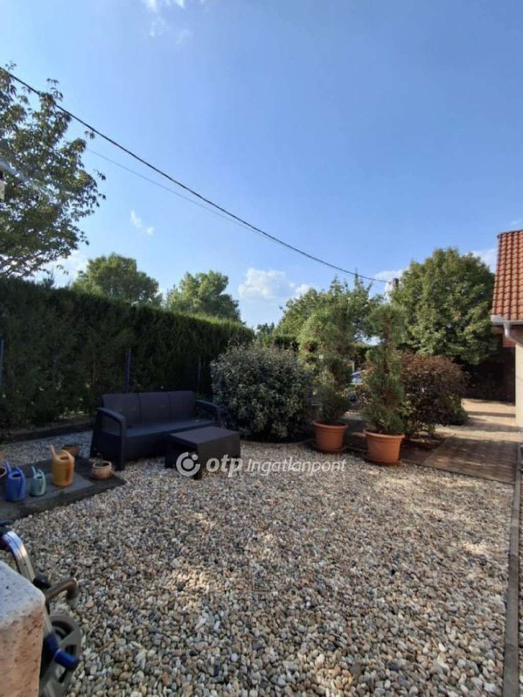A 601 m2-es telek gondozott, parkosított, borókasövénnyel természetesen szeparált a szomszédoktól, így valóban privát életteret ad. Elektromos kapu, elektromos garázskapu, vezérelt öntözőrendszer és dupla garázs növeli a kényelmet.