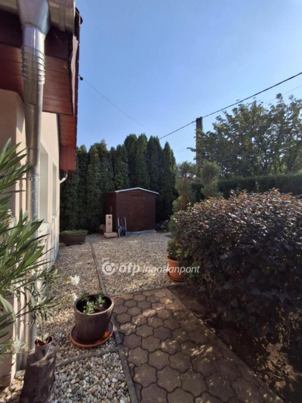 A 601 m2-es telek gondozott, parkosított, borókasövénnyel természetesen szeparált a szomszédoktól, így valóban privát életteret ad. Elektromos kapu, elektromos garázskapu, vezérelt öntözőrendszer és dupla garázs növeli a kényelmet.