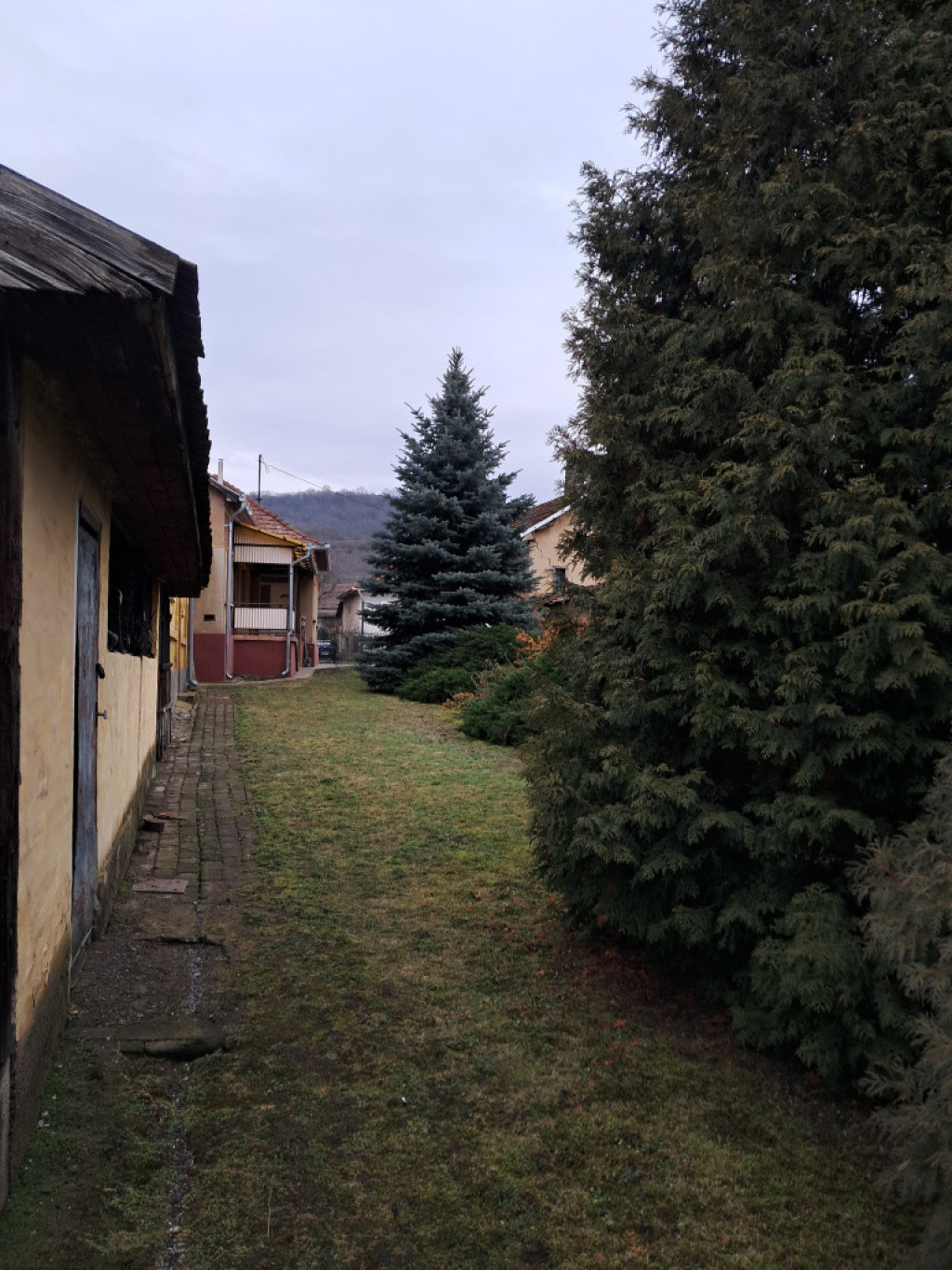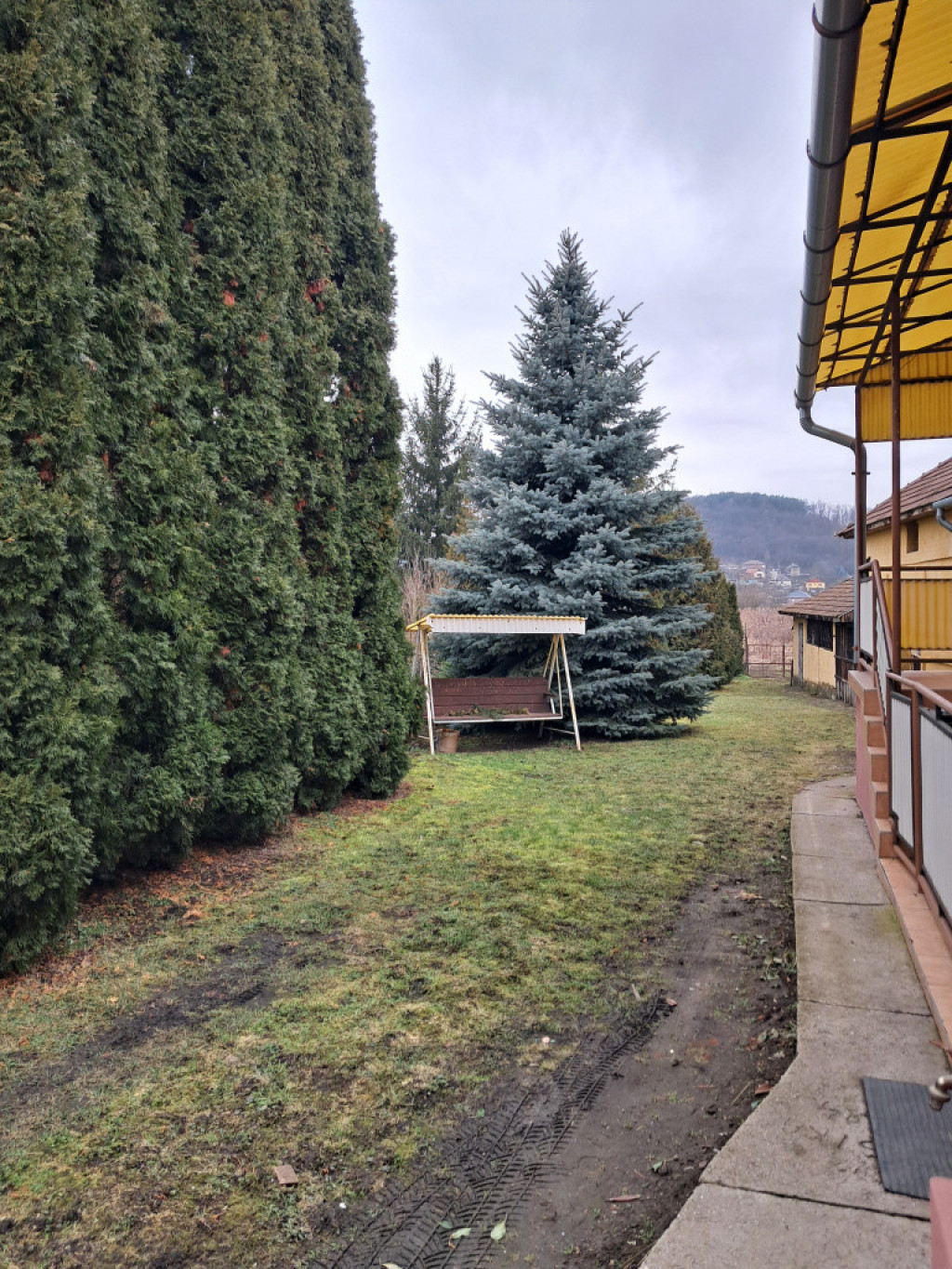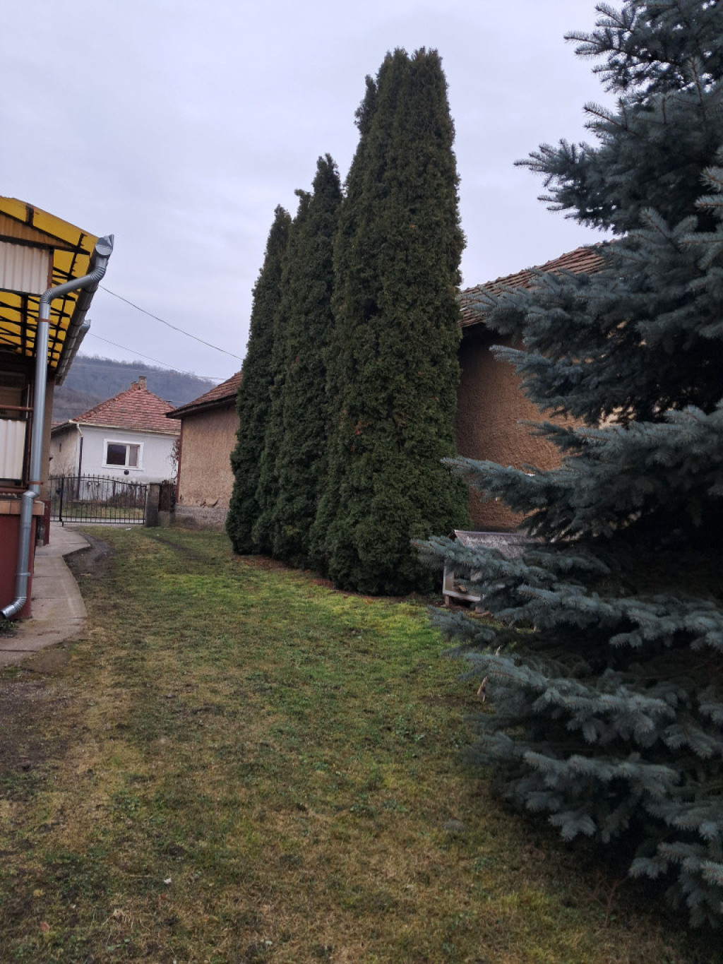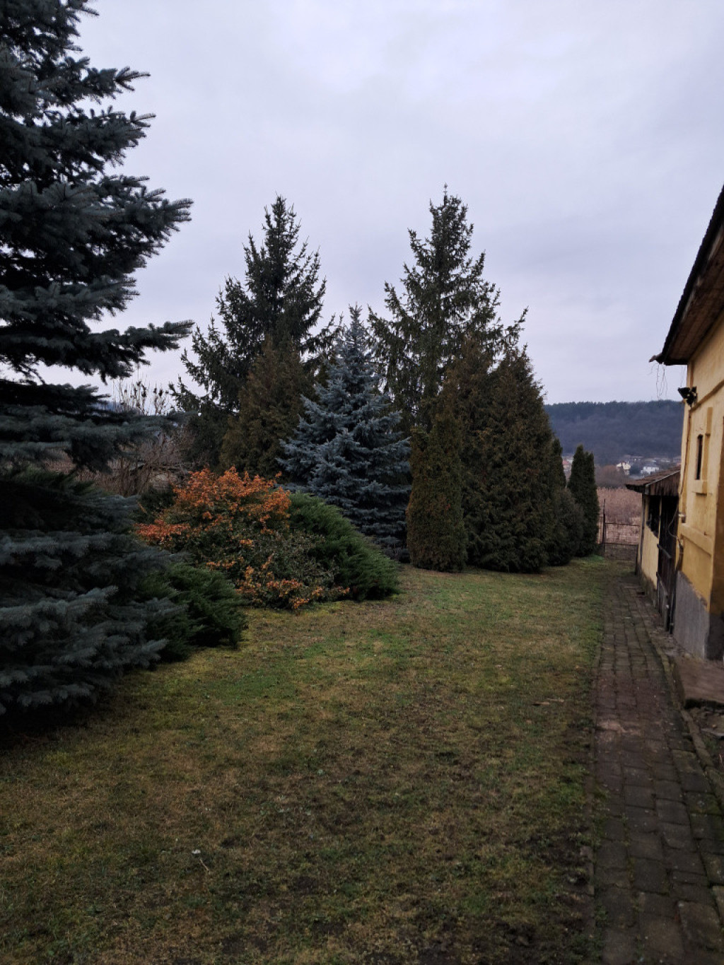 A szépen karbantartott ház udvara szinte arborétumot idéz.
