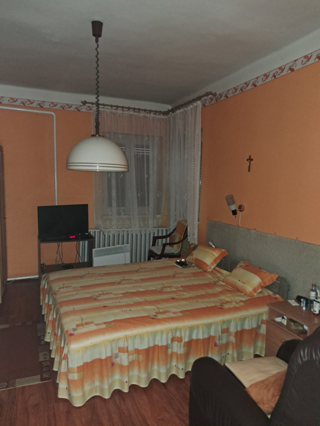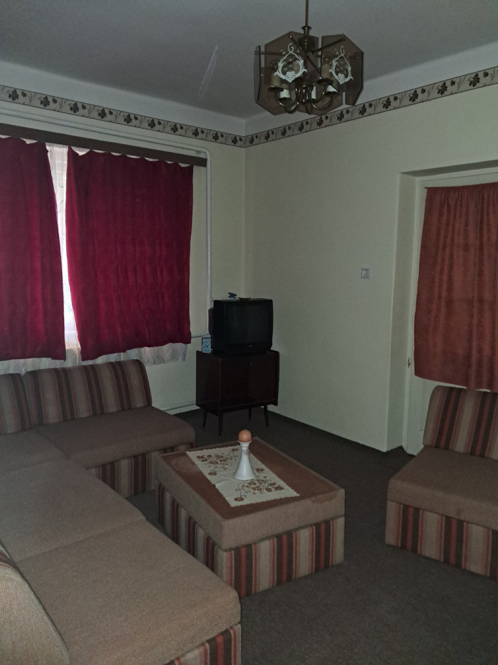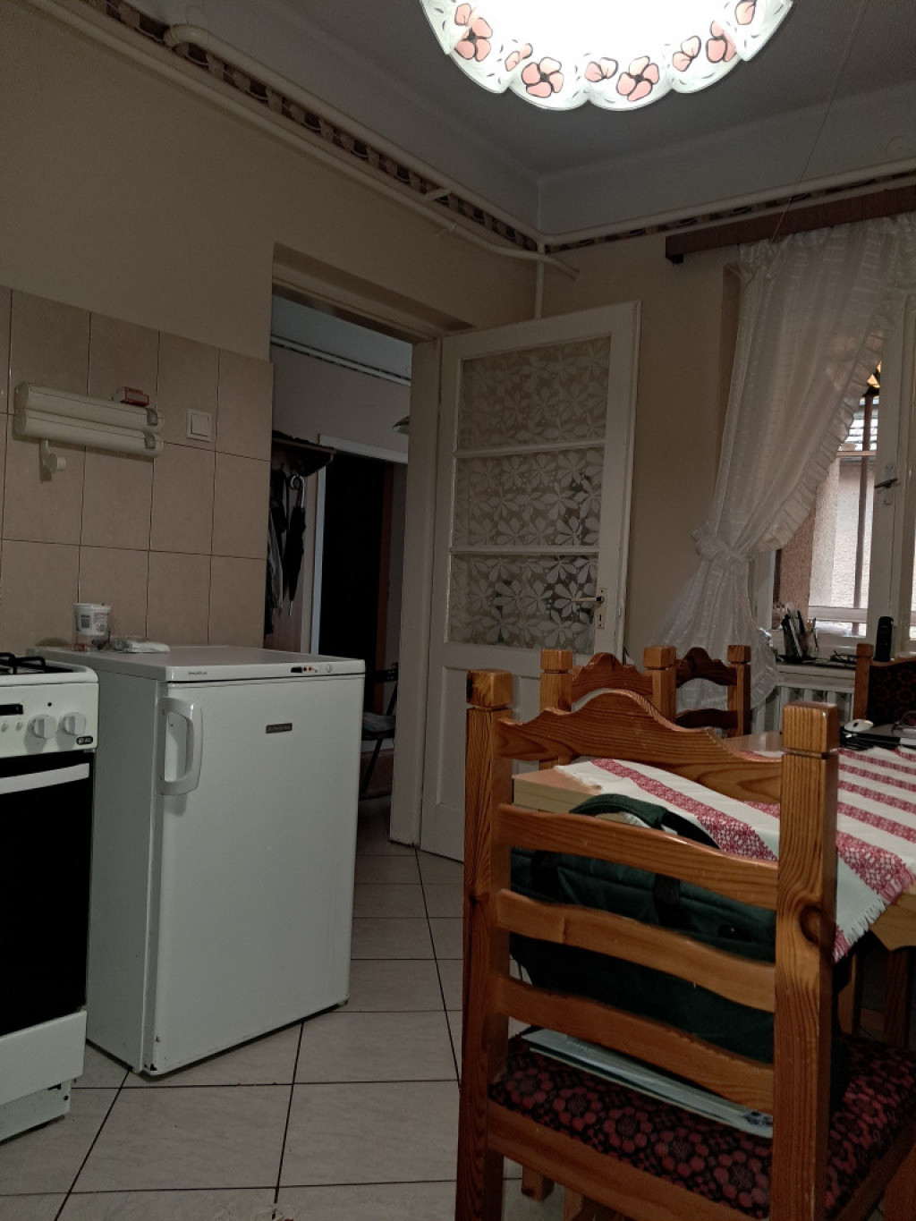 A nagyobbik rész : előszoba,3 szoba,nagy étkezős konyha,kamra,fürdőszoba WC-vel, helyiségekből áll. / A fürdőszobára igény szerint rá fér a modernizálás,de jelen állapotában is használható.
