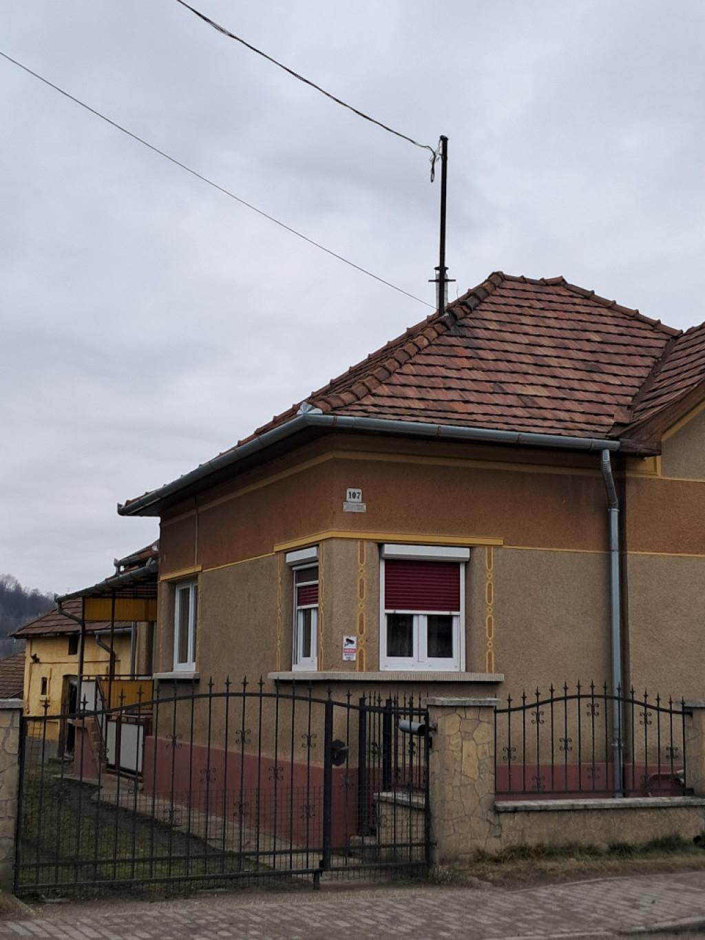 A tető cseréppel fedett, jó állapotú, csak úgy mint a falazat .