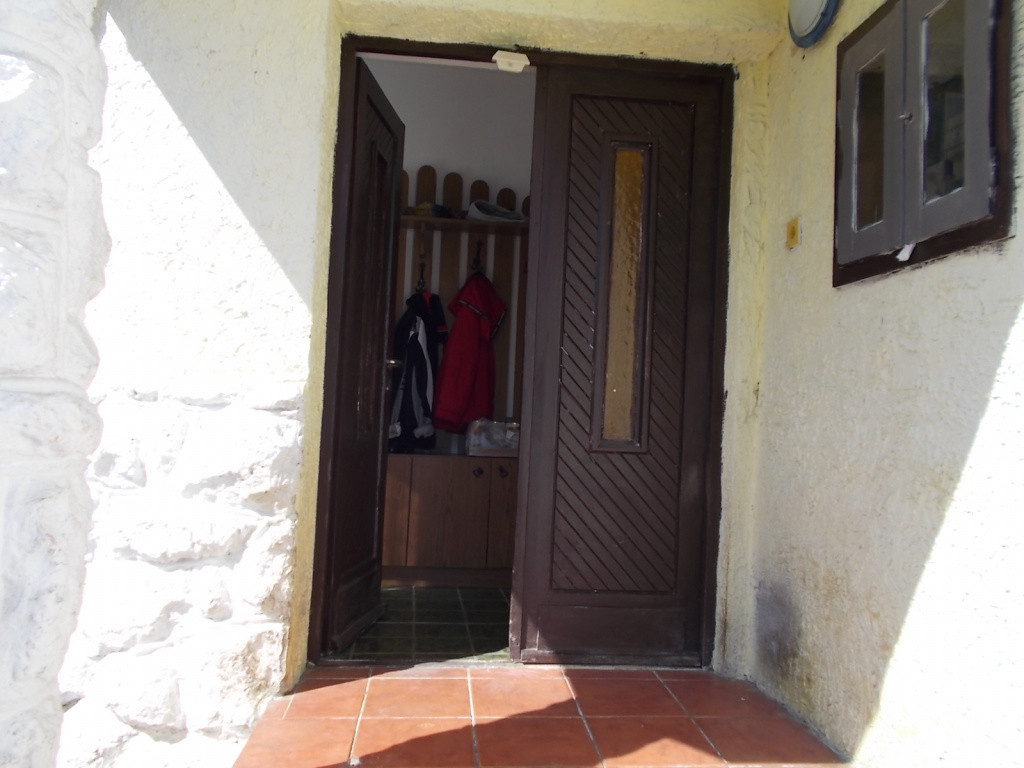 A háznak csak egy szomszédja van, a telek nagy része lapos, található oldal és előkert is. A fenti kertben gyümölcsfák vannak.
