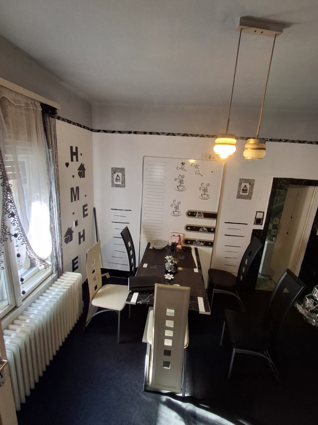 A 3 és fél szobán kívül rendelkezik egy étkezővel, konyhával, kamrával, fürdőszoba + wc vel, és egy pincével, ahol megtalálható a vegyes tüzelésű, illetve a gázkazán, amely radiátorokon keresztül gondoskodik a ház melegéről.