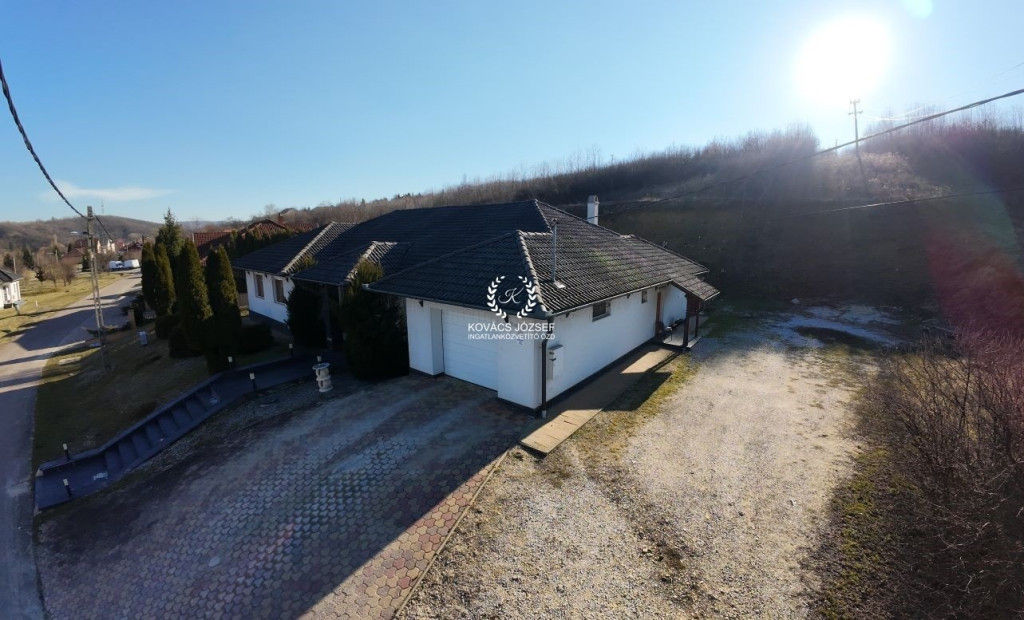 A Roób József utcában, 1076 m2-es körbekerített saroktelken eladó egy 180 m2-es prémium minőségű, 4 szobás családi ház, garázzsal 2 terasszal és kilátással.
