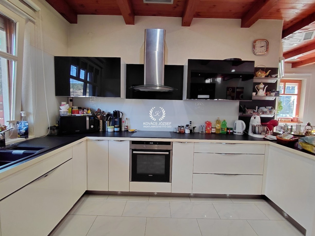 A tágas és gépiesített konyha mosogatógéppel, elektromos sütővel és villanytűzhellyel, páraelszívóval, kamrával és az amerikai konyhákra jellemző nyitottsággal, modern elemekkel ékesíti a belső teret.