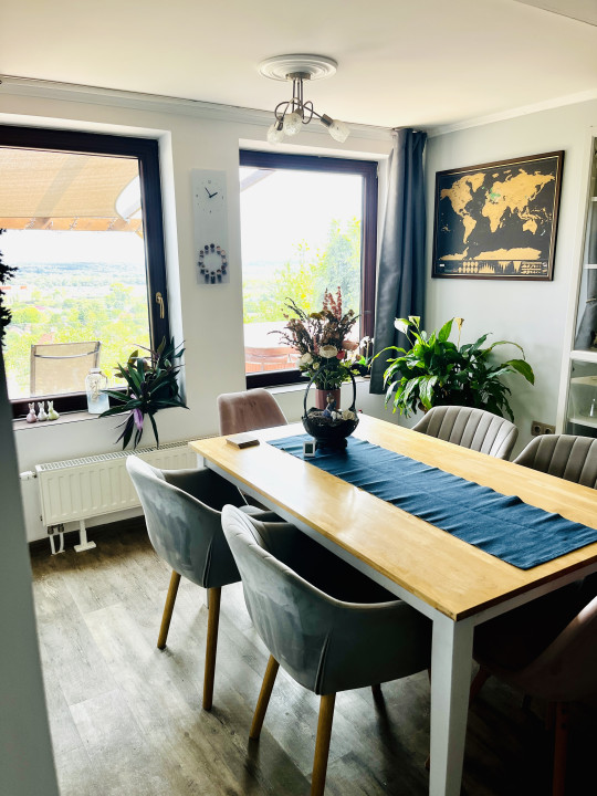 Pákozdon, festői természeti környezetben eladó egy minden igényt kielégítő, 3 szintes, 126 m² hasznos lakóterű ingatlan, amely egy 1057 m²-es telken terül el. Az épület különlegessége a közel 70 m²-es, lélegzetelállító panorámával rendelkező terasz, ahol egy 6 fős jakuzzi biztosítja a teljes ellazulást. A ház belső kialakítása rendkívül világos; a nagyméretű ablakoknak köszönhetően minden helyiség napfényben úszik, és a lakóterekből zavartalan kilátás nyílik a környező tájra.
