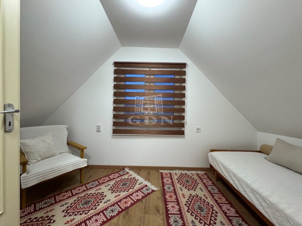 A földszinten amerikai konyha, fürdőszoba és WC található. A tetőtér beépített, két szoba került kialakításra.