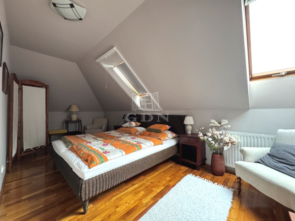 A tetőtérben egy tágas nappali, két hálószoba, gardrób és fürdőszoba kapott helyet. A szinthez kapcsolódik egy részben zárt, 22 m²-es panorámás erkély, ahonnan lenyűgöző kilátás nyílik a környező tájra és a Velencei-tó irányába.
