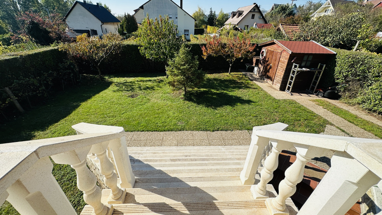 A földszinti részen előtér, amerikai konyhás nappali és három szoba kapott helyett. A nappaliból a NYUGATI TÁJOLÁSÚ FEDETT teraszra léphetünk ki, ahonnan lépcső vezet a gondozott kertbe.