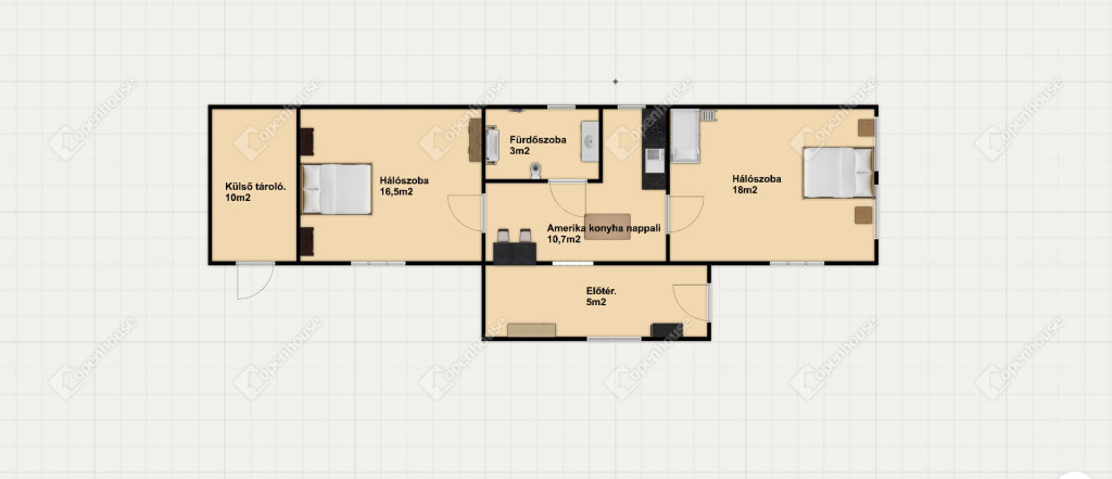 2 külön nyíló hálószoba