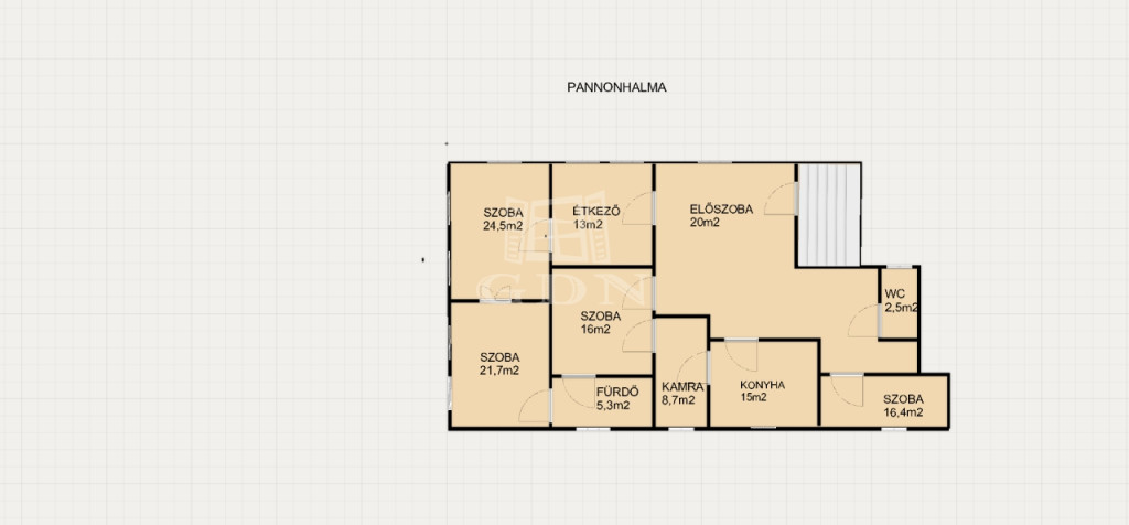 140 m² lakótér, 4 szoba + konyha, veranda, fürdő, külön toalett