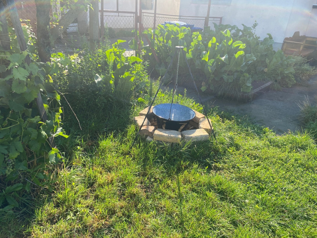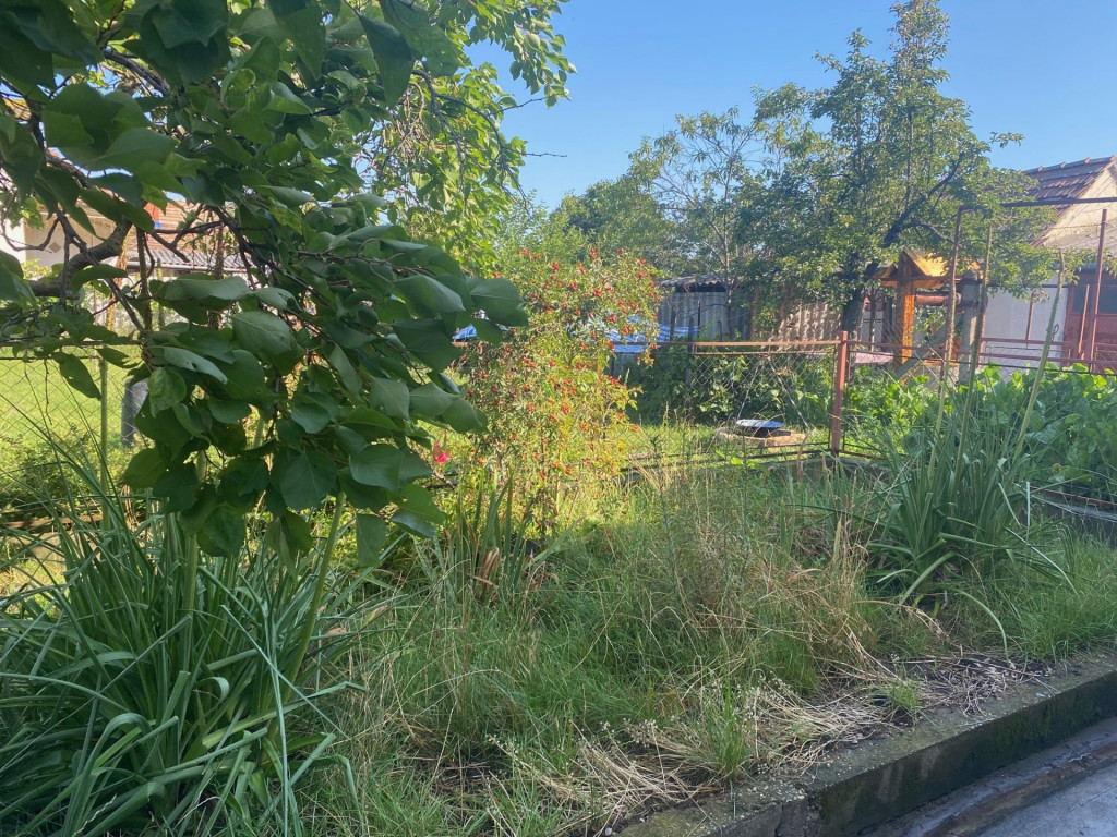 a kert füvesített, de külön rész lett kialakítva veteményesnek is