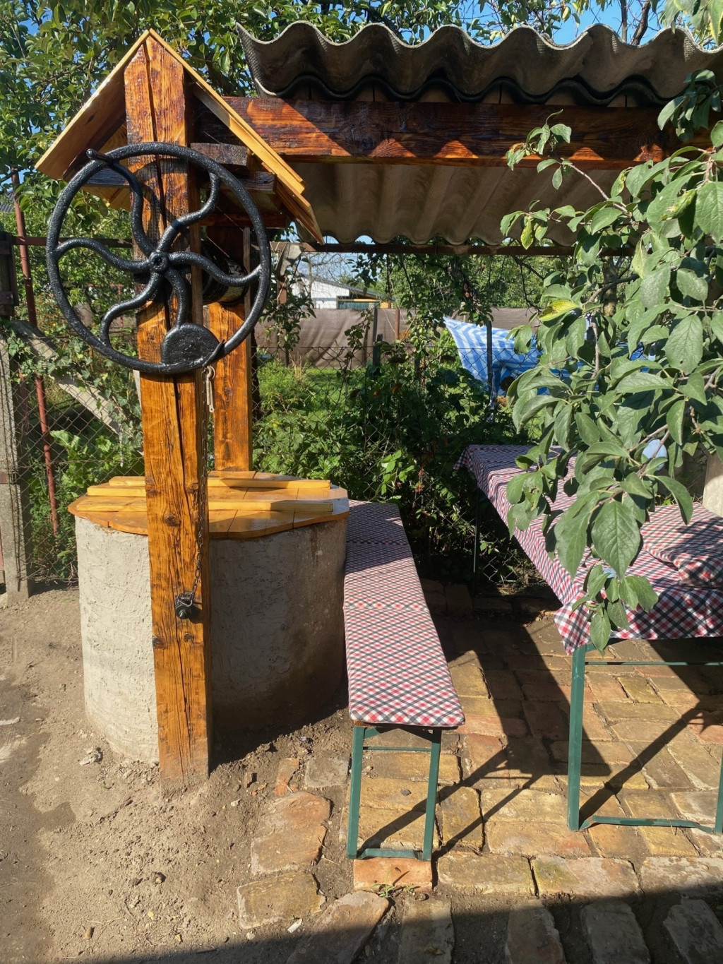 a saroktelek miatt jól megközelíthető, tágas érzetű udvar