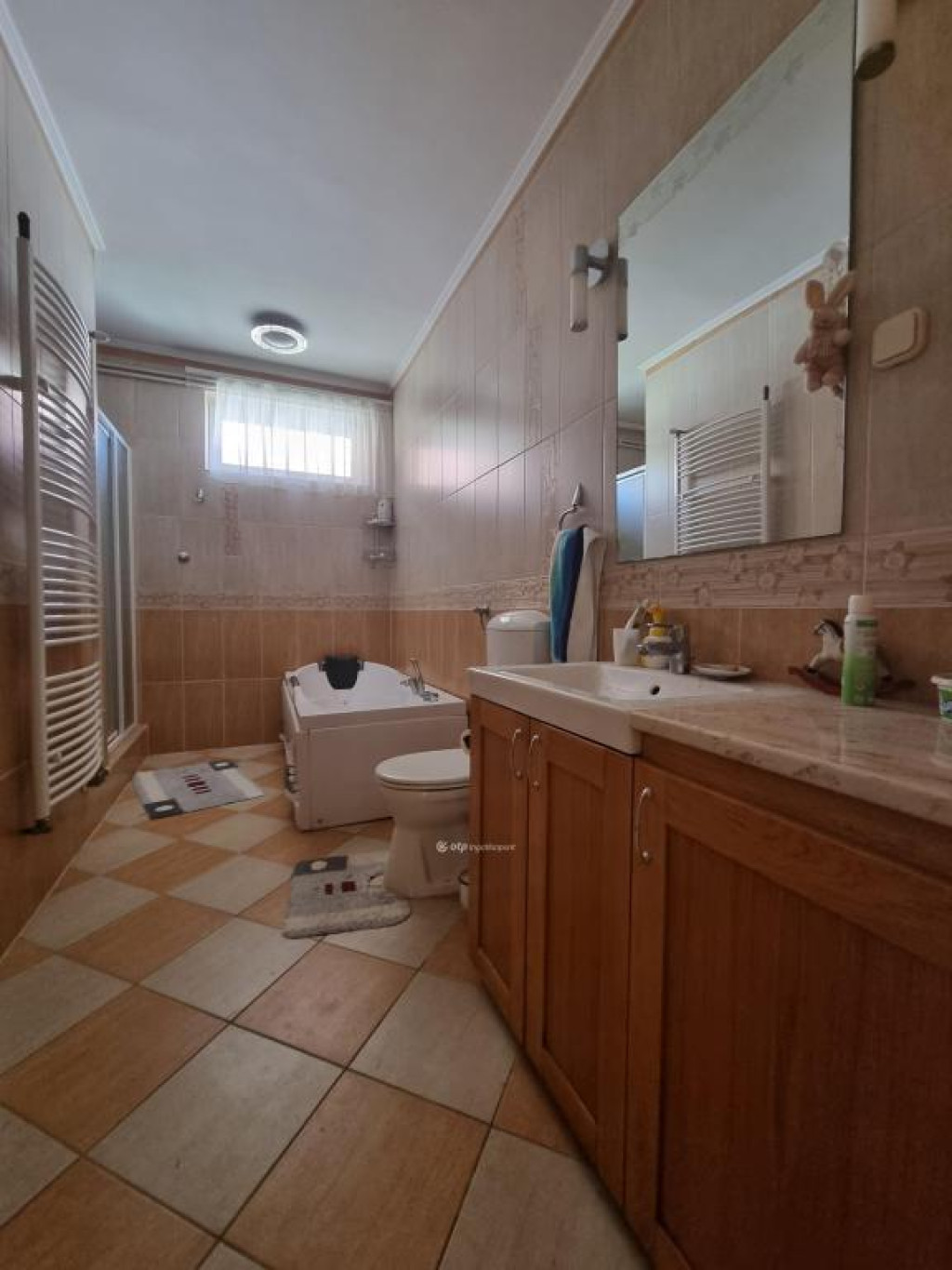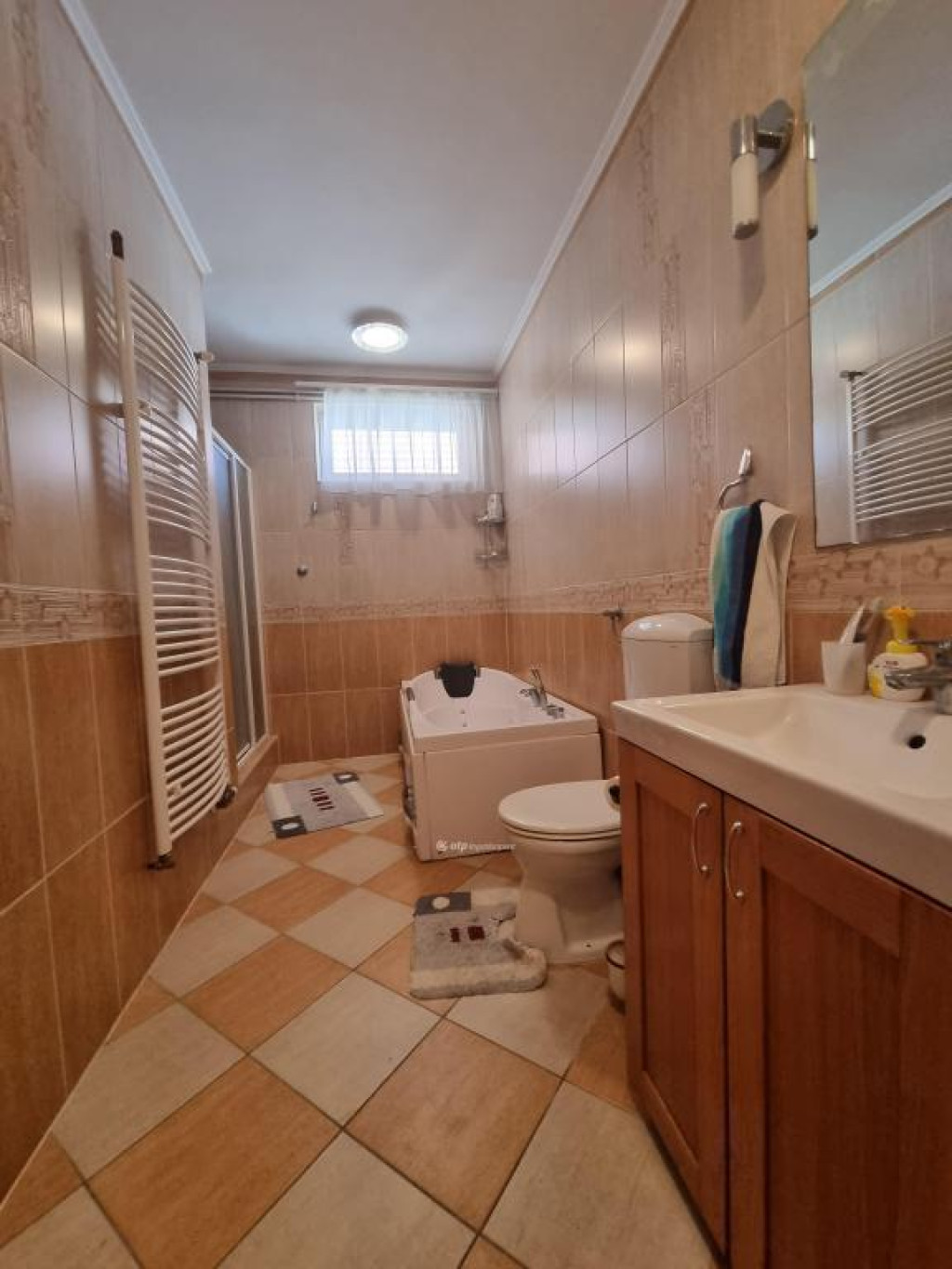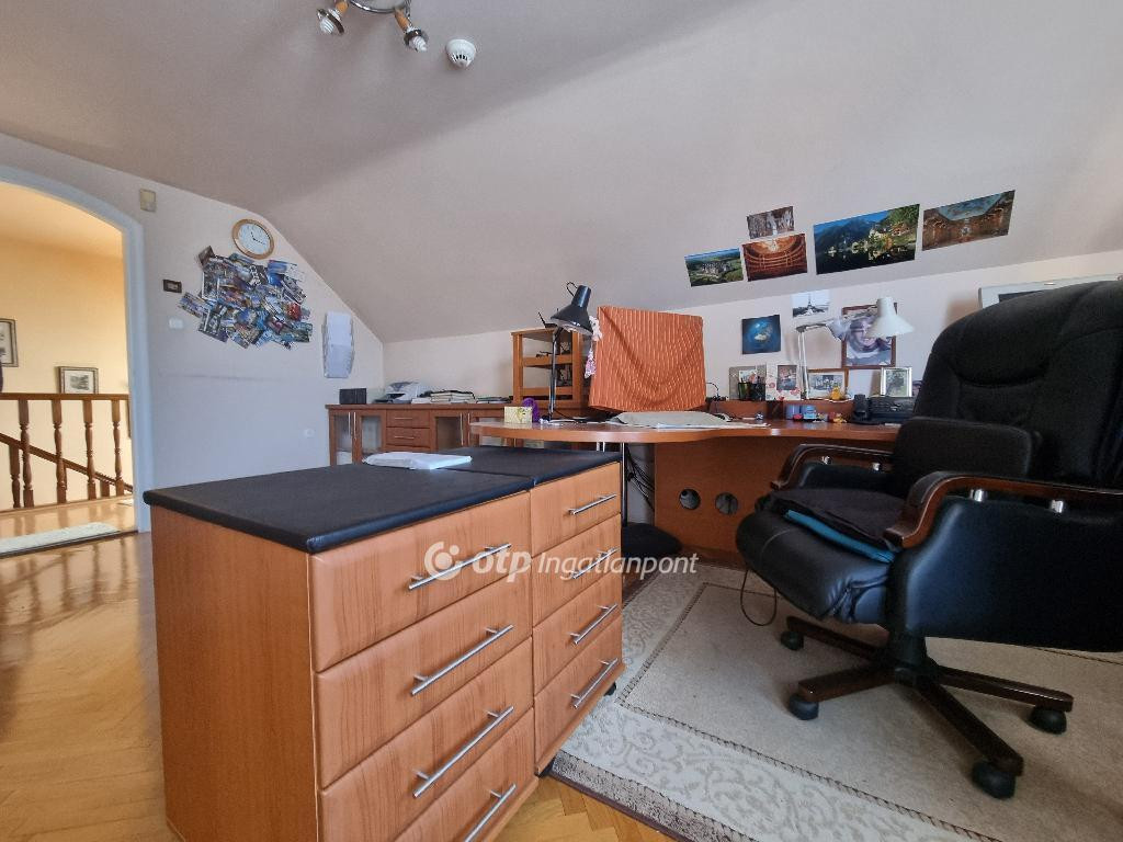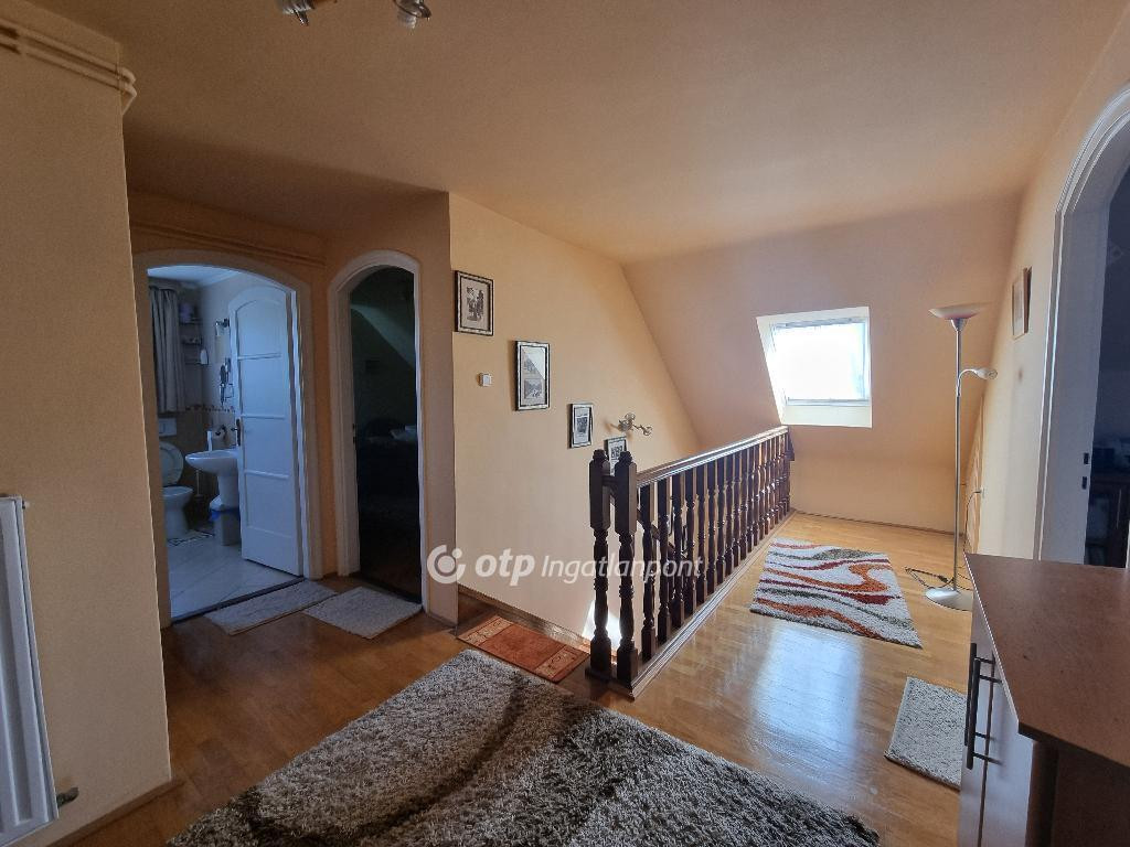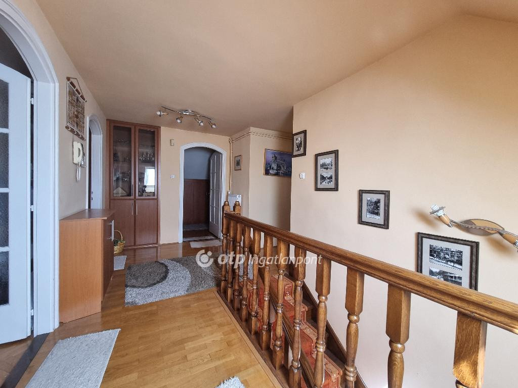 Eladásra kínálok Veszprém vármegyében, Pápa közkedvelt, újépítésű lakónegyedében egy remek elrendezésű, kétszintes, 209 m2-es, befektetési célnak kiváló, több generáció együttlakására is alkalmas, családi házat, dupla, 874 m2-es telken. Az ingatlan adottságaiból kifolyólag kiválóan alkalmas befektetési célra: akár vendégházról, panzióról vagy lakás kiadásról legyen szó. Elrendezés tekintetében áll: 4 teljes értékű lakószobából, egy hangulatos nappaliból és étkezőből, konyhából, előszobából és közlekedőből mindkét szintem, gardróbszobából, kamrából, kazánházból és raktárhelyiségből, két fürdőszobából és illemhelyiségből, szaunahelységből, mosókonyhából valamint egy teraszból. A lenti és az emeleti lakóteret egy gyönyörű, világos lépcsőház köti össze. A ház 4 szobája és a nappali fa parkettás, a többi helyiség kerámia burkolatú. Mindkét fürdőszoba kényelmes, nagyméretű, mindkettőben jacuzzi és zuhanyzó került beépítésre. Gáz cirkó kazán szolgáltatja a melegvíz ellátását és a fűtését, padlófűtéses és radiátoros hőleadással, erre a nappali díszeként is pompázó és a téli estéket hangulatossá varázsló kiválóan működő kandalló is rásegít valamint hűtő-fűtő klima. Az ingatlan mérete ellenére alacsony rezsi számlával rendelkezik. A ház kiváló statikai és szerkezeti állapotú, hatalmas nyílászárói vannak, világos tereket biztositva. Udvara rendezett, körbekerített elektromos kapúval, részben füvesített, részben térkövezett, ahol dupla garázs és egy fatároló is megtalálható. A parkosított udvar kellemes pihenési lehetőséget nyújt a nyári napokra az ide költöző családtagjainak. Az ingatlan utcafronti részén, térkövezett parkolási lehetőség van. Az ingatlan kiváló elhelyezkedéssel rendelkezik, ahonnét könnyen elérhetőek a közintézmények, élelmiszerboltok, drogériák, gyógyszertár, buszpályaudvar, sétálóutca és minden létfontosságú üzlet. Az otthonosan kialakított családiházat ajánlom mindazon vevők részére, akik egy szép, családias, nyugodt kertvárosi részen kívánnak élni, távol a város zajától. Az ingatlan paramétereit tekintve tökéletes egy családi háznak vagy akár üzleti szempontból is jó befektetés lehet. Az otthonosan kialakított családiházat ajánlom mindazon vevők részére, akik egy szép, igényes ingatlant szeretnének. Az OTP Ingatlanpont teljes körű ügyintézéssel áll az eladók és a vevők rendelkezésére. A kínálatunkból választott ingatlan finanszírozásához kedvezményes hitelkonstrukciót kínálunk. Otthon Start Hitelprogram. Az adásvételi szerződés megkötéséhez igény szerint megbízható ügyvédi közreműködést biztosítunk, és segítséget nyújtunk az adásvételhez kapcsolódó ügyek intézéséhez is. Az ingatlanról készült alaprajz, illetve fényképfelvételek az Otp ingatlanpont szellemi tulajdonát képezik. Amennyiben felkeltette érdeklődését az általam kínált ingatlan, keressen bizalommal. Ne habozzon tovább, hiszen ez a ház valóban páratlan lehetőséget kínál! SZEREZZE MEG EZT A MODERN ÉS STÍLUSOS OTTHONT, HÍVJA MOST A MEGADOTT TELEFONSZÁMOT, ÉS LÉPJEN KÖZELEBB ÁLMAI OTTHONÁHOZ!